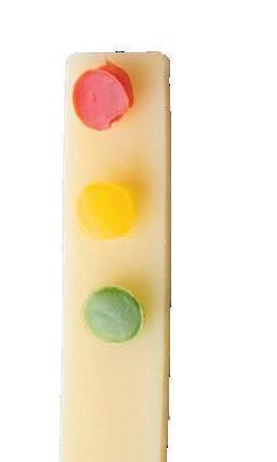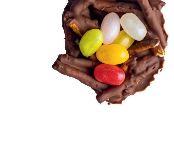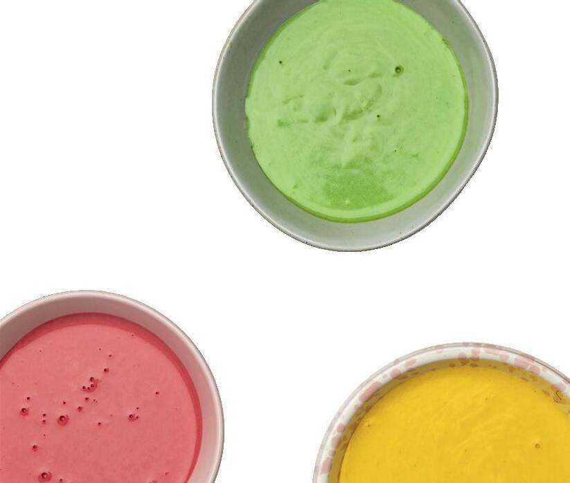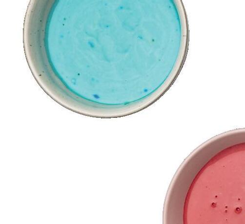 Smält röd och vit candy melts i två skålar. Se tips på sidan 109.