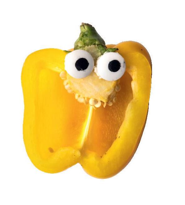 Näsborrar kan du få av paprikabitar som du fäster med lite gräddfil eller guacamole.
