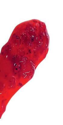 4 Doppa en jordgubbe i den vita färgen. Nu har du svampens fot.