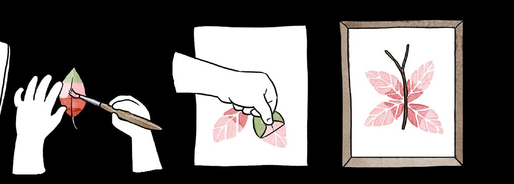 4. Tryck löven mot pappret. Klistra fast pinnen i mitten av mönstret. Färdigt!