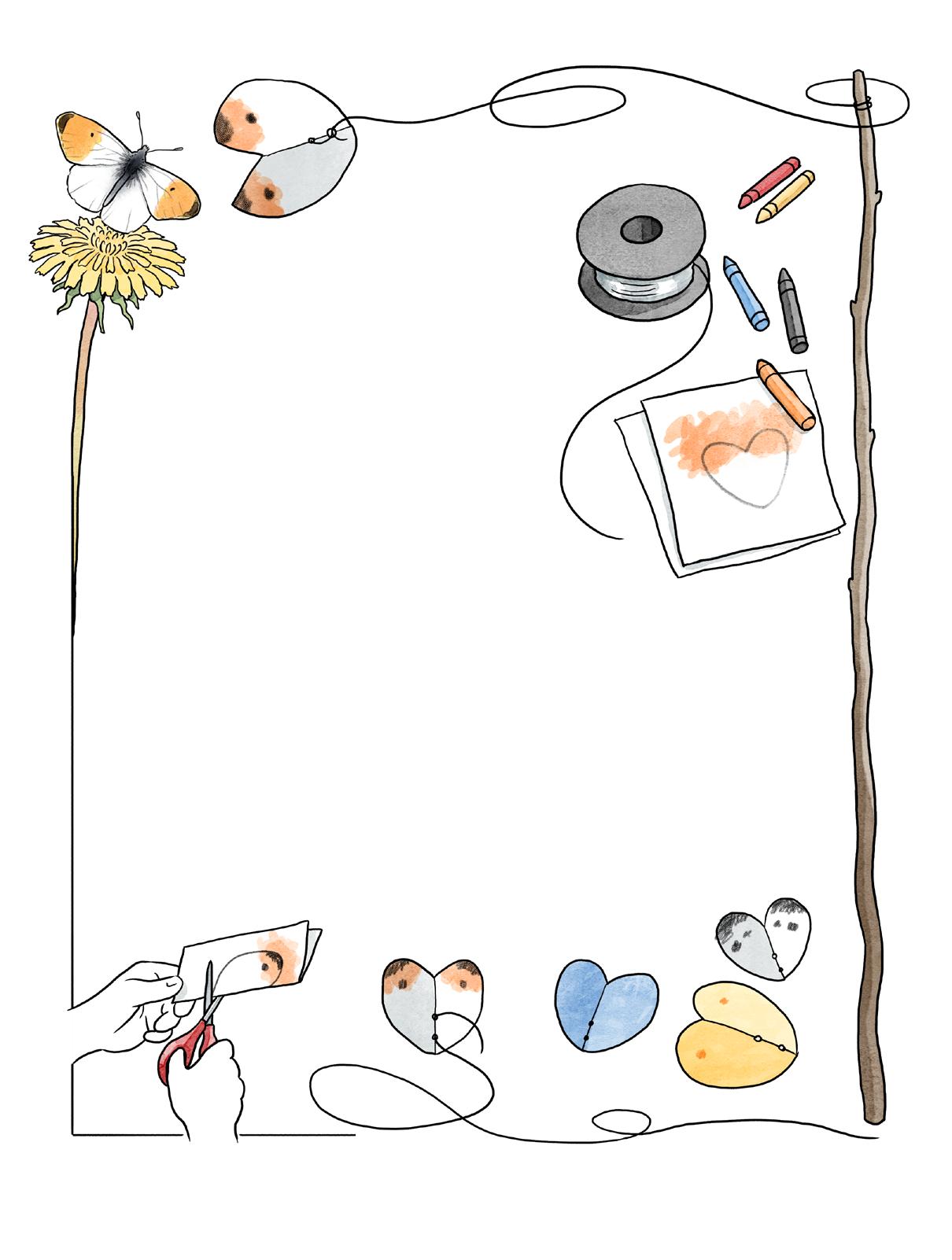2. Färglägg ett silkespapper i samma färger som fjärilarna. Klipp ut ett hjärta av pappret.