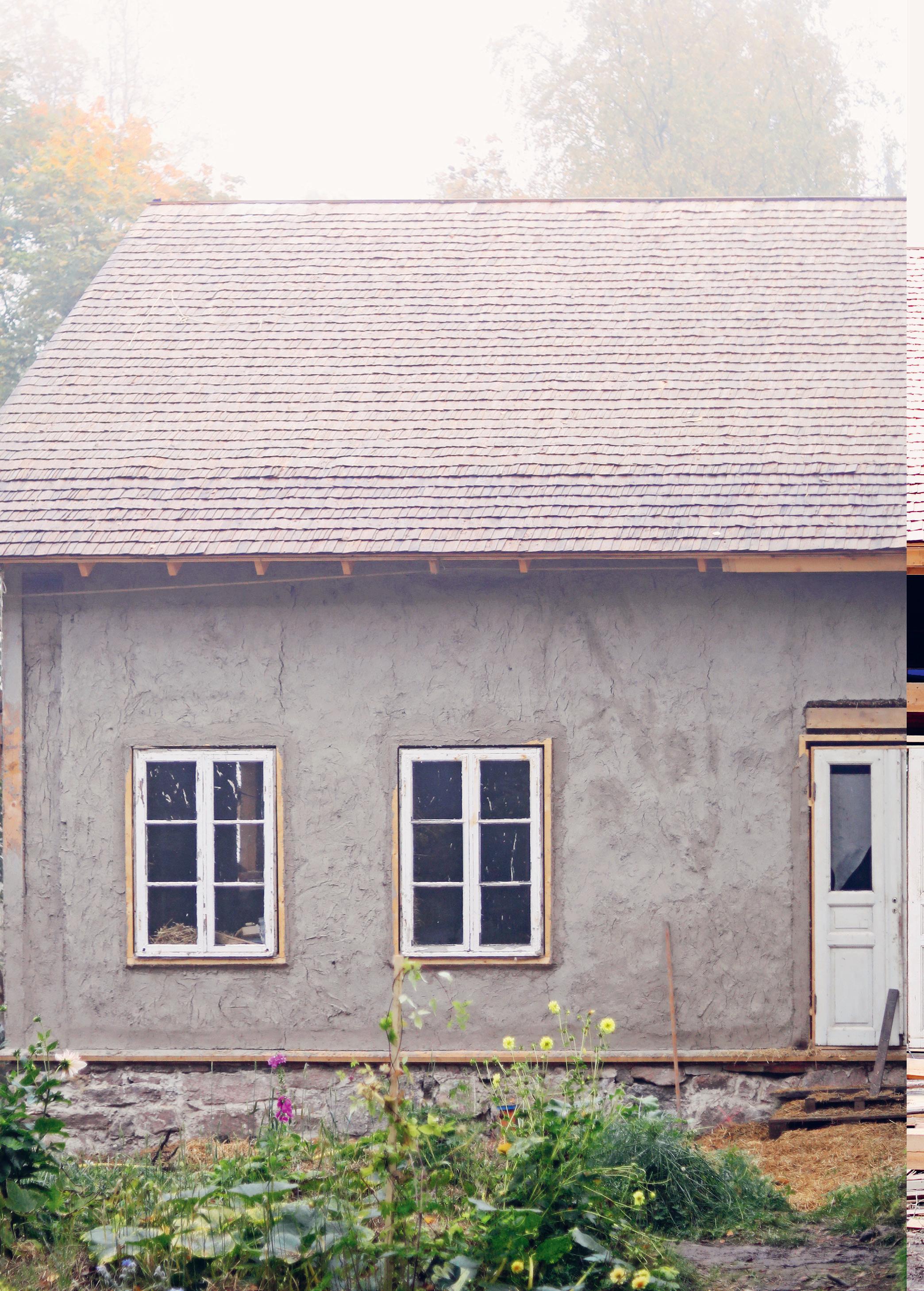 Från den gamla verkstaden – som också blev ett test-laboratorium för olika byggtekniker som vi ville applicera på vårt hus – kunde vi ta hand om mina föräldrar, avlasta, laga mat och ta vara på tiden som fanns kvar. Och samtidigt påbörja och polera drömmen om ett annorlunda, värderingsdrivet och närproducerat hus – ett lugnare liv bortom topplån och räntor. Livet kändes meningsfullt på något vis. Och bygget fyllde en viktig funktion. Förutom att skapa ett hem, gav byggandet ett lugn i takt med att min pappas Alzheimer sakta (och alldeles för snabbt) monterade ner allt som var just han. Att då traska över till bygget och knuffa in en halmbal på rätt plats, kånka tunga hinkar med lera eller spika ett par brädor höll förståndet i schack. Och jag fick samtidigt se något vackert, beständigt och stabilt växa fram mellan taggiga, utmanande vardagar. Ett hus! Och ett hus som min pappa hade älskat. »Ner med känslorna i huset – då står det bättre« sa en vän efter att min pappa gått bort. Så det gjorde jag. Ett stadigare hus får ni leta efter.