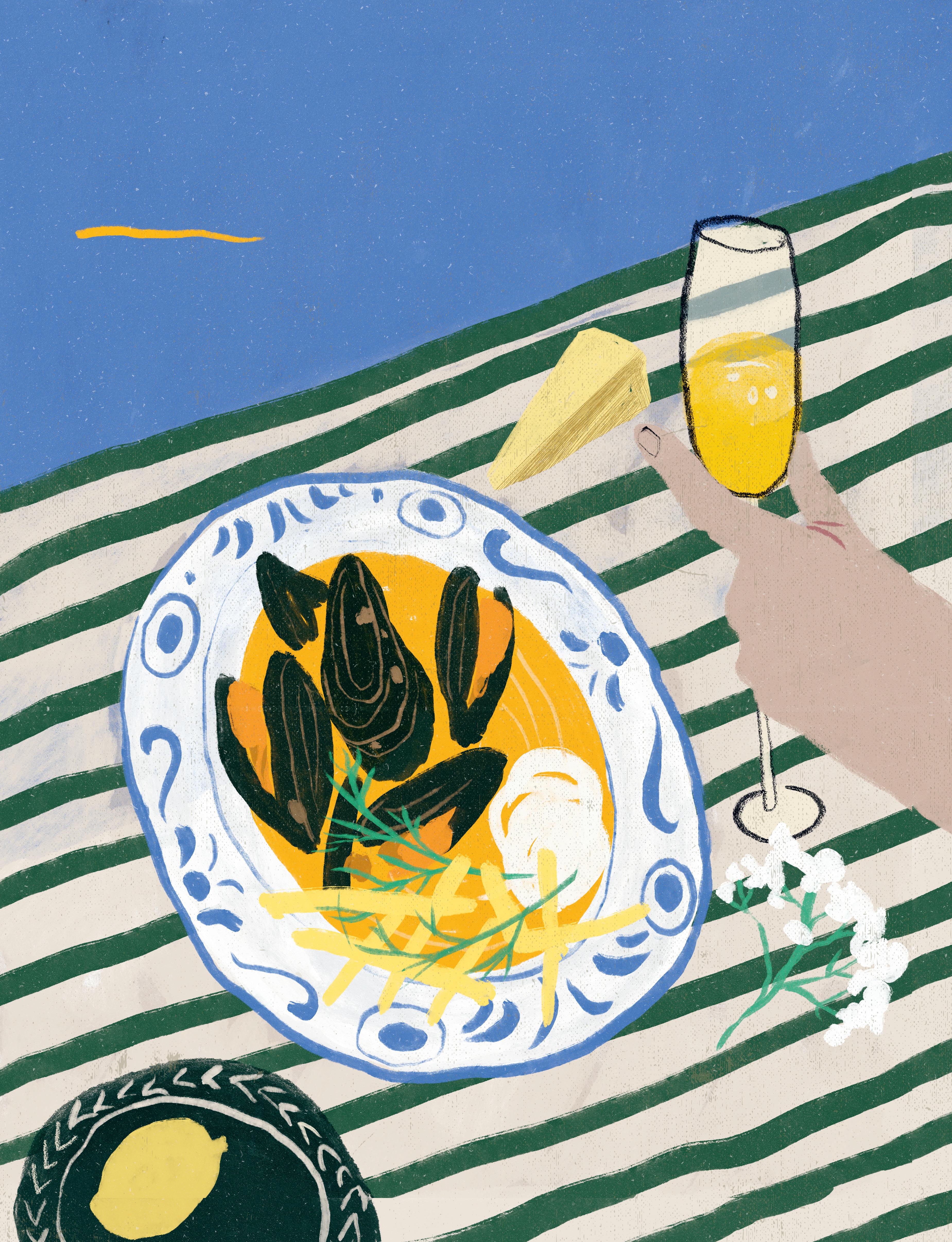 MUSSLOR MED NDUJA OCH POMMES MED ÖRTER OCH PARMESAN
