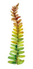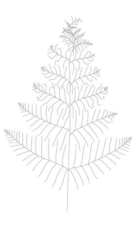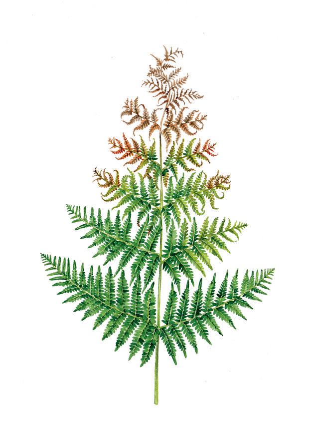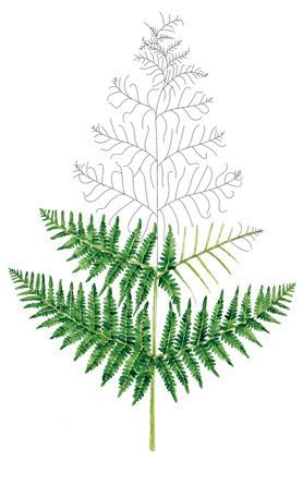 Skissa med blyerts ett centralt bladskaft som förgrenar sig i allt kortare skaft vilka Àr vinklade uppÄt och gradvis smalnar av. Eftersom detta Àr en mÄlning av en örnbrÀken pÄ hösten har den övre tredjedelen torkat och bladen har börjat krusa sig och vika sig in mot skaftet. Skissa Àven skaften till bladflikarna lÀngs varje förgrening.