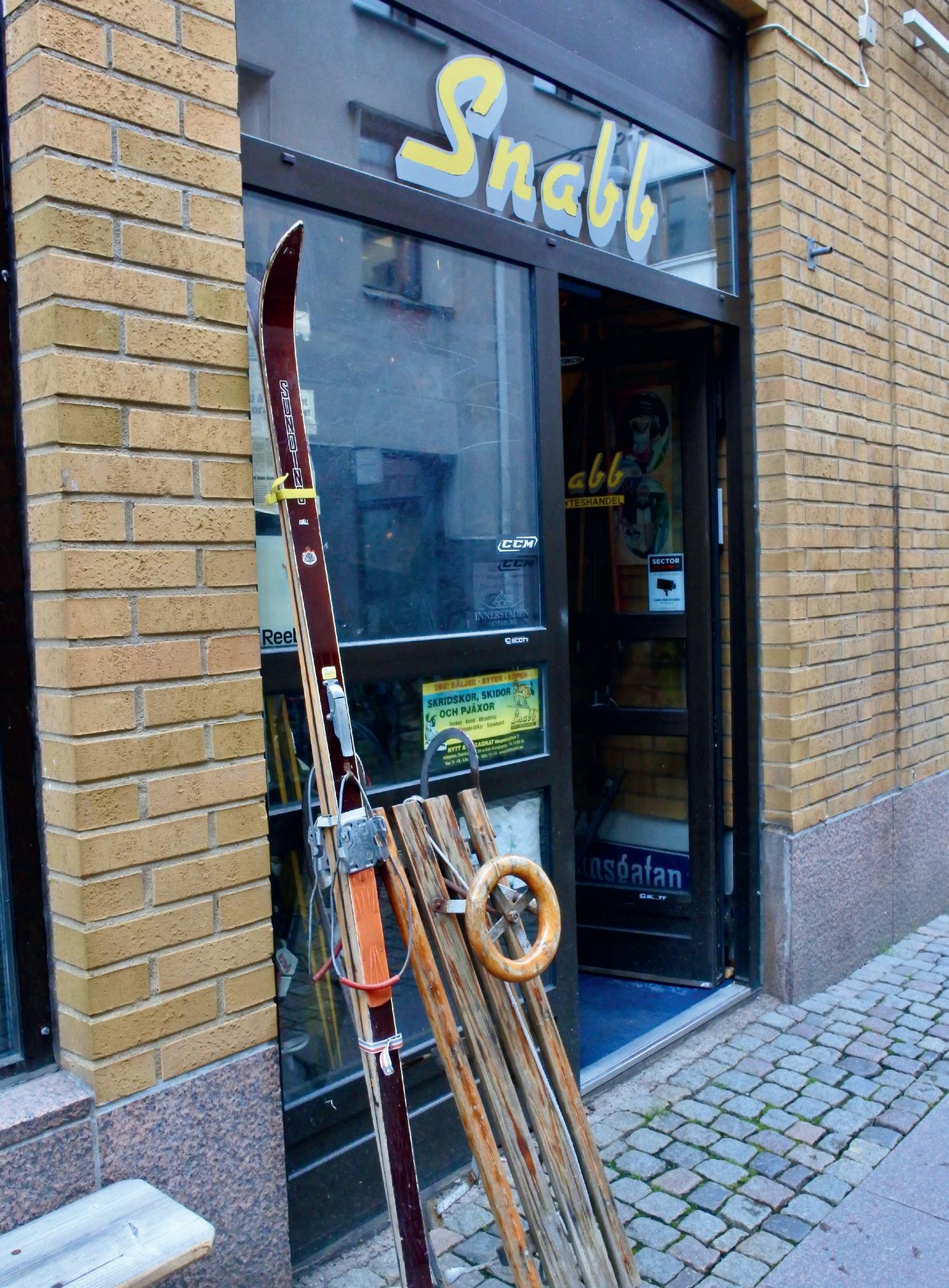 Hur kan då en så förhållandevis enkel affärsidé överleva i mer än sjuttio år? De senaste fyrtio åren har Snabben helt inriktat sig på sportutrustning med fokus på vintersport. Och generationer av ungdomar har här kunnat byta ut sina skridskor och skidpjäxor för en rimlig peng allt eftersom fötterna har vuxit. En kuriositet med Snabben är att man har ett litet anspråkslöst vintersportmuseum innanför dörren, där många kan hitta sina gamla favoriter. Och varje dag när man öppnar ställer man ut den gamla rattkälken och träskidorna som inropare. Eller som en hälsning från historien. 4 Magasinsgatan