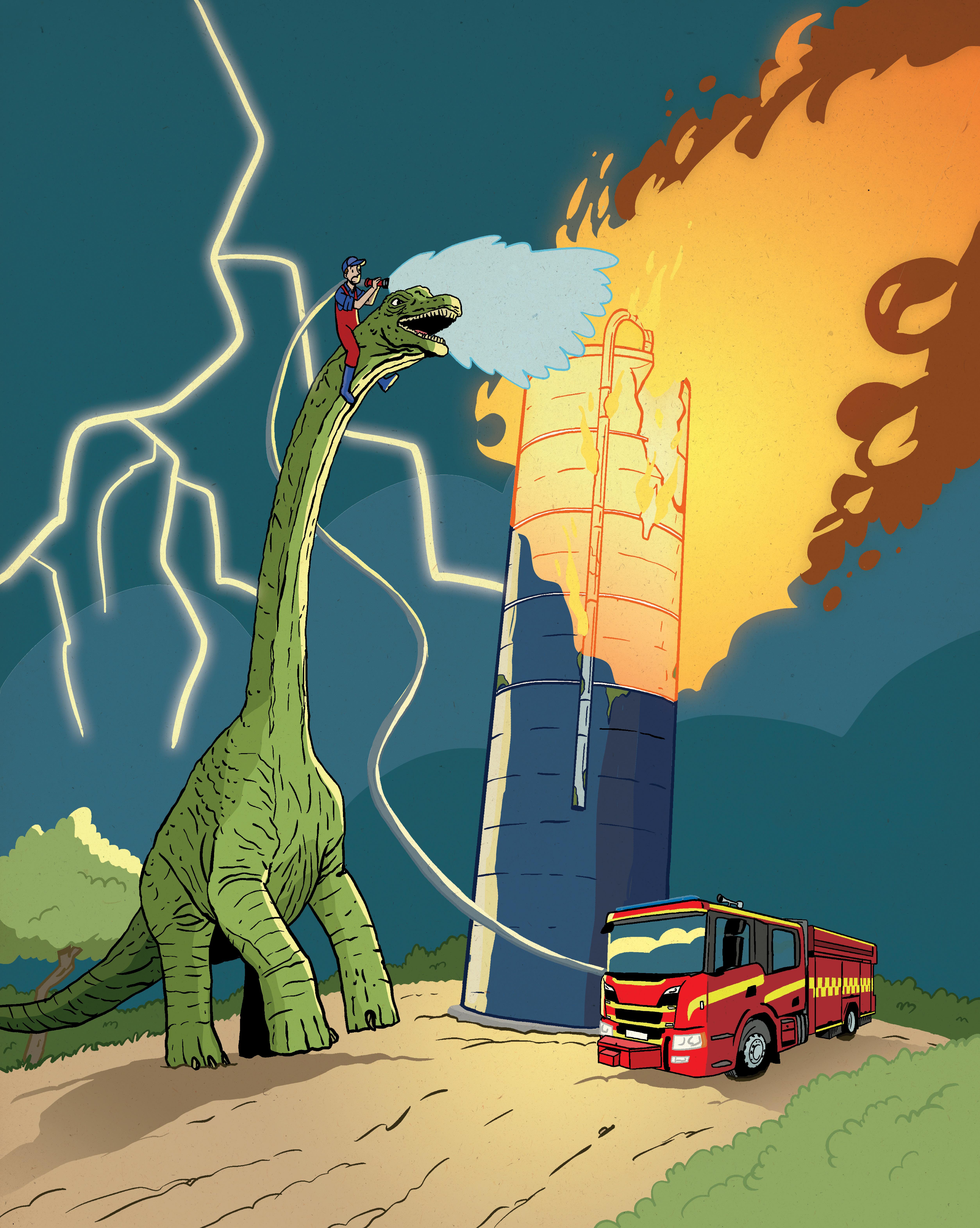En av de riktigt stora dinosaurierna på bondgården är en Brachiosaurus som heter Bertil. Brachiosaurus är en art av sauropoder. De flesta sauropoder har benen på sidan av kroppen precis som ödlor och så har de långa halsar, ungefär som giraffer. Sauropoder är några av de största djur som någonsin har levt på land.