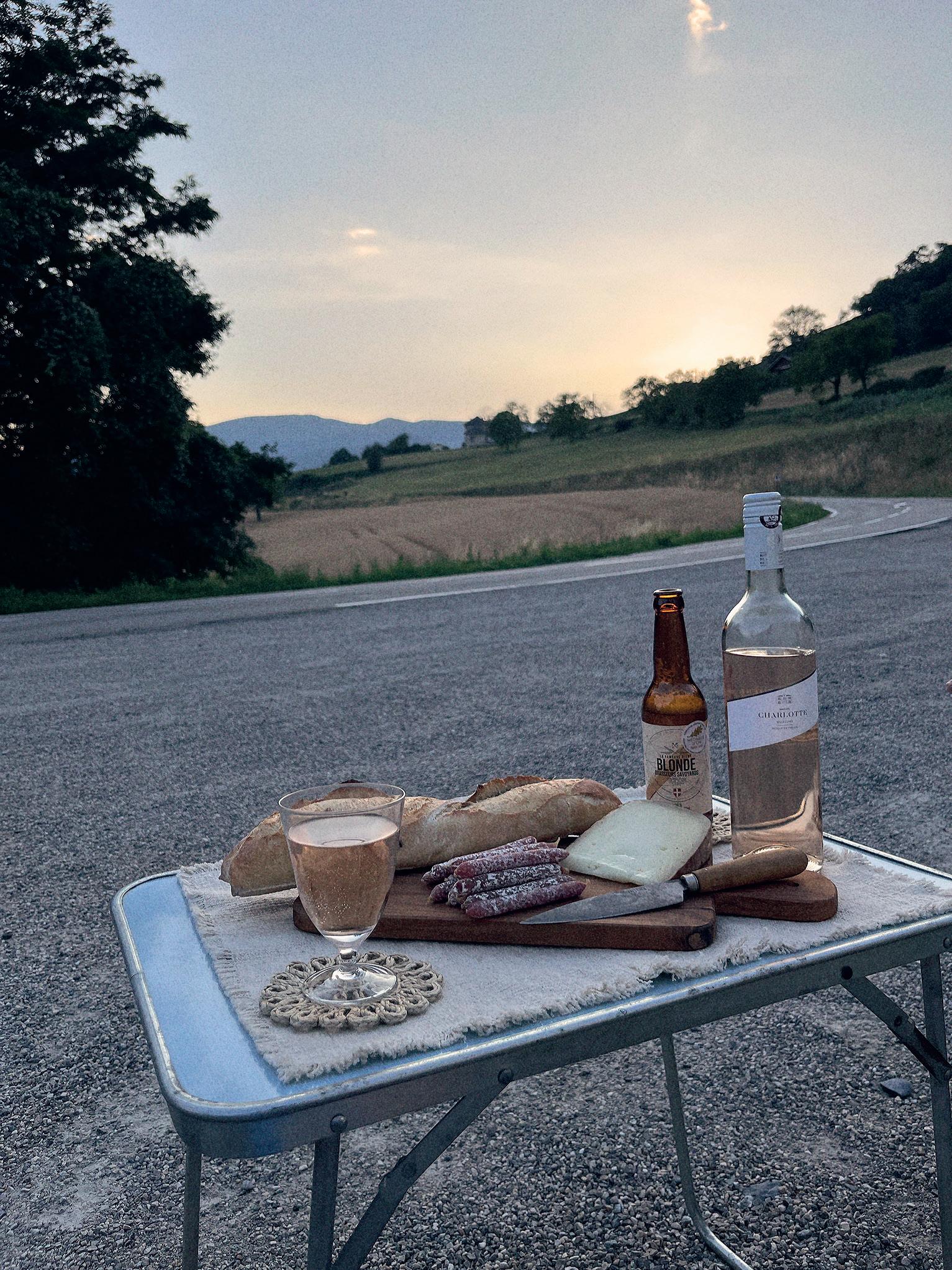 Baguette med en bit ost vid en vägkant på den franska landsbygden, svalt rosévin i glaset och helt folktomt. Vi blickade ut över gyllene fält från våra stolar och insåg där och då att detta är en stund vi kommer minnas länge.