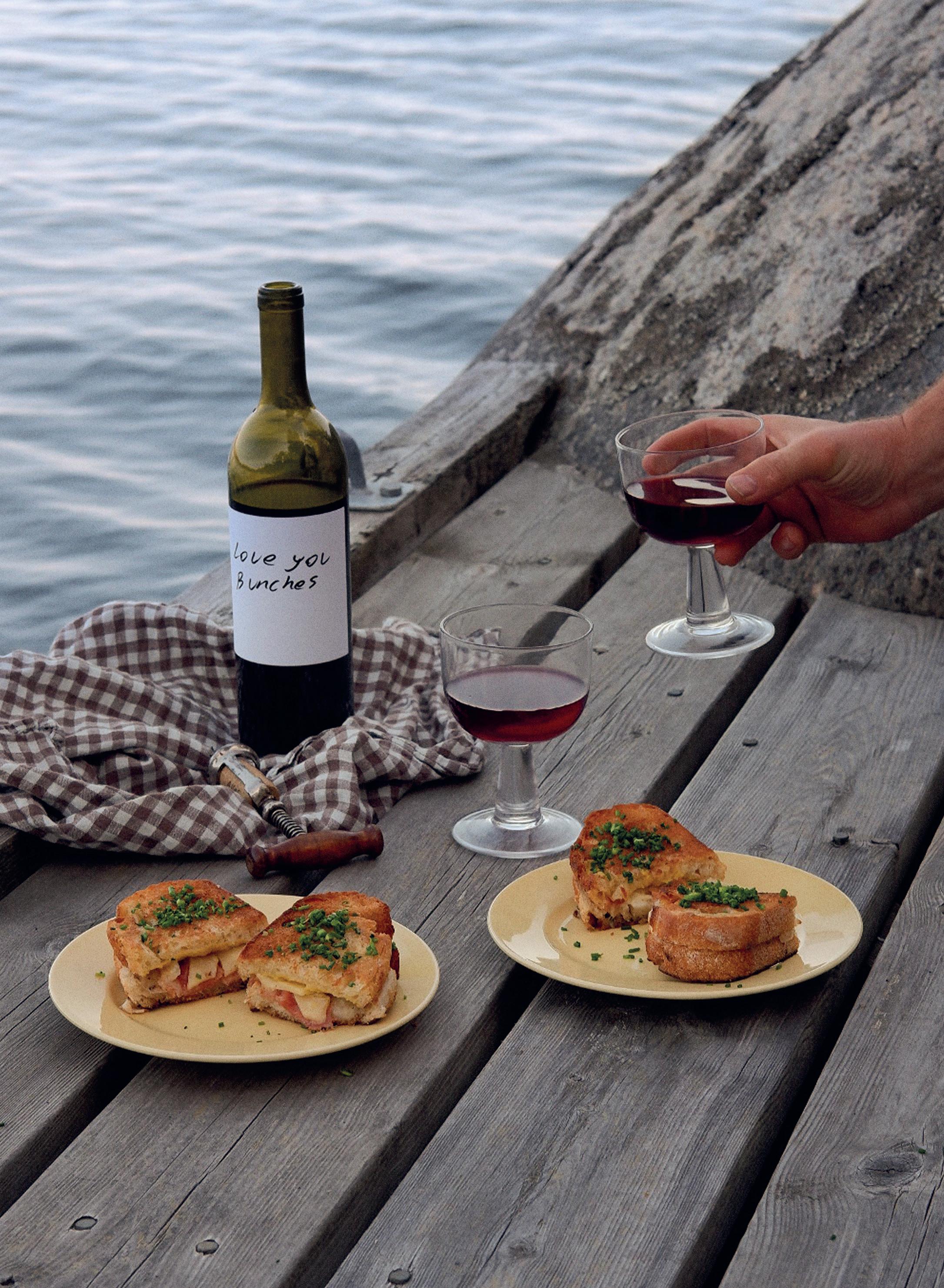 Toast. Visst diggar vi alla en frasig, ostig toast? Speciellt om den innehåller gruyère på två olika vis. Jag serverar gärna min toast på en brygga med ett glas josigt, svalt rödvin.