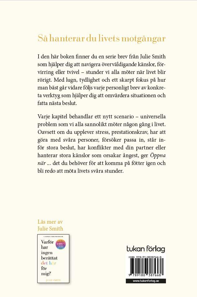 Jag insÄg att jag mÄste skriva den hÀr boken nÀr jag fick höra att folk gick omkring med min första bok Varför har ingen berÀttat det hÀr för mig? för att kunna lÀsa i den nÀr de behövde. Medan de historierna delgavs mig som en komplimang tÀnkte jag att det inte var syftet med boken. Det var inte rÀtt bok för uppgiften, för den innehÄller begrepp och fÀrdigheter som hjÀlper folk att arbeta med sig sjÀlva och sin psykiska hÀlsa inför framtiden, ofta genom att se tillbaka pÄ svÄra hÀndelser i det förflutna. Inte en rad handlar om vad jag brukar sÀga till folk nÀr de Àr som mest sÄrbara och hudlösa.