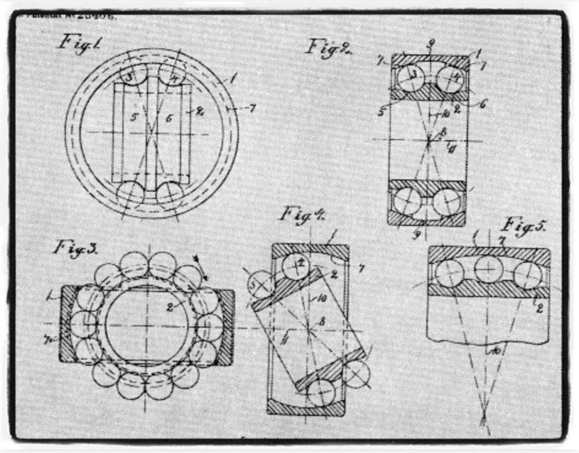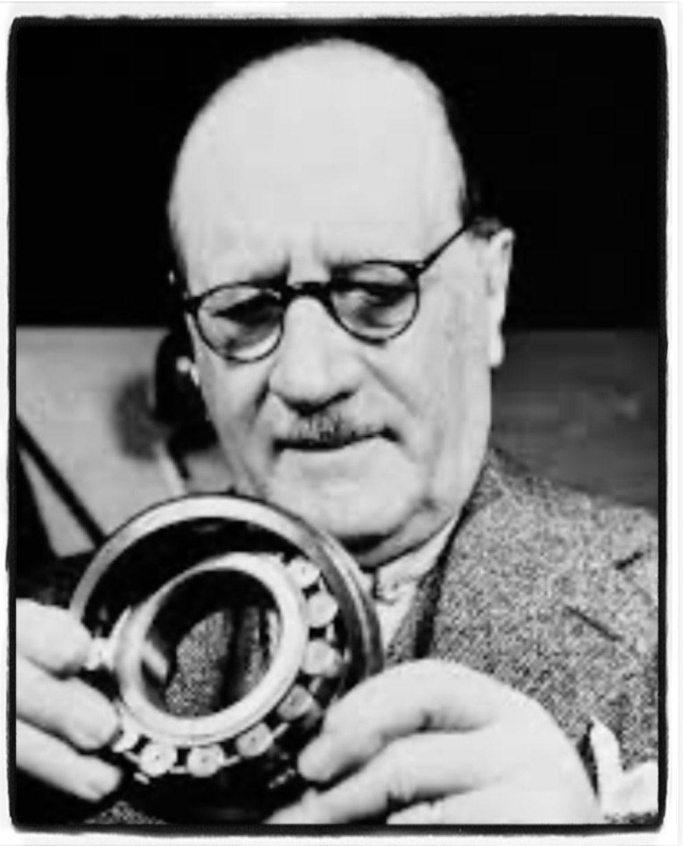 Sven arbete på Gamlestadens textilfabrikeri Göteborg.Ett stortproblem på denna tid varatt maskinernas kullagergick ofta sönderoch leveranstidernavar långa. 1907 presenterade Sven sinide om sfäriska kullagersom kunde rotera även näraxeln somlagretmonteratpåvar snedställt.