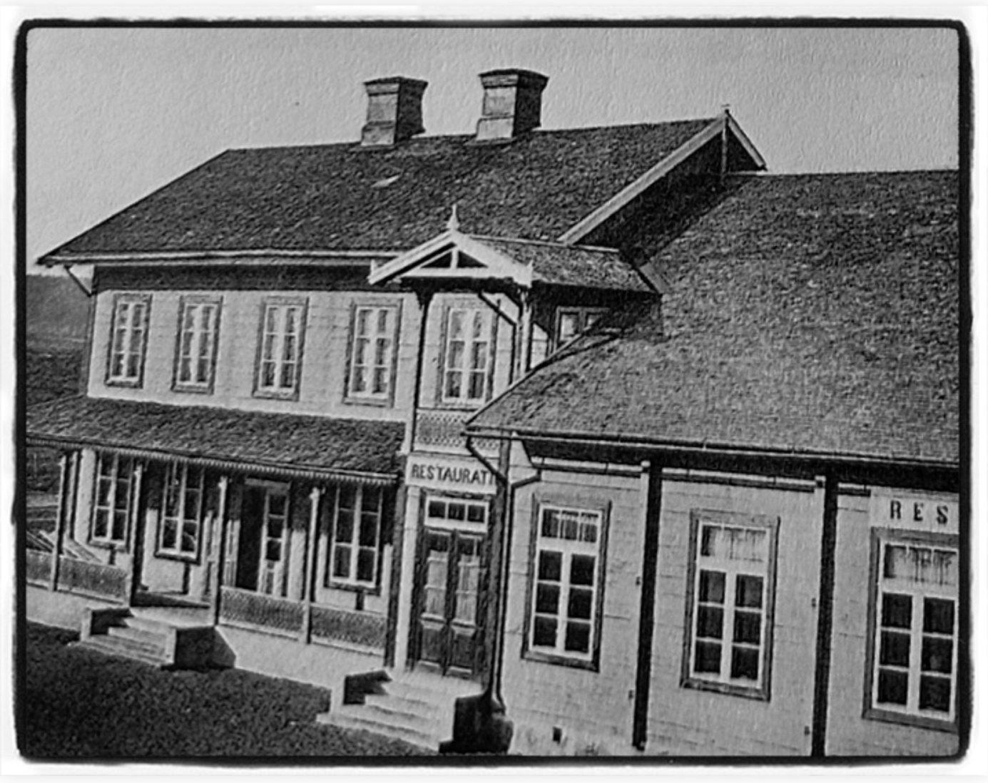 1862 stod järnvägshotelletfärdigt,granne medstationen.Det varett trähus itvå våningarmedenmatserveringpånedre plan ochrumsuthyrningpåövre plan.Förrhadetågen ex.Stockholm –Göteborgmiddagsrast ochi motsatt riktning frukostställe iHallsberg.