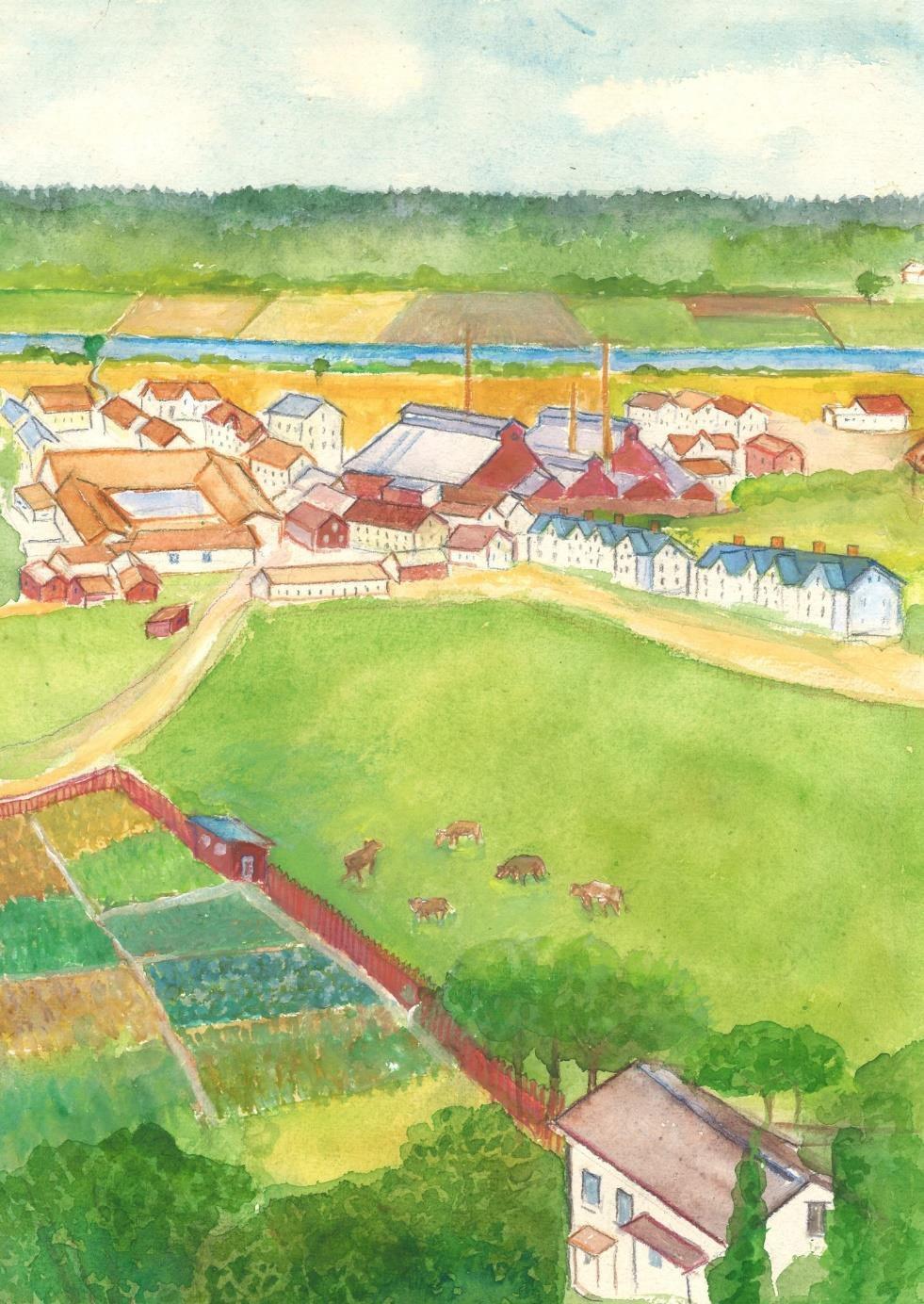 Detta är berättelser om människorsom levdei ettbrukssamhälle, där industrin vardet viktigaste.Ett samhälle på 1950-60-taletdådeflestamänniskorna bådebodde ocharbetadepåsamma plats, trotsatt de en gång vandrat runt från ochtill olikaglasbruki Europa. Glasbruksproduktionen vardet viktigaste ochyrket gick iarv från fartill sonframtill mitten av 1900-talet då handblåsningen försvann.Här fannsjordbrukmed hästar ochkor ochett mejeri, en snickarverkstad, målarverkstad ochenhandelsträdgård, bagerioch en rad andra affärer.