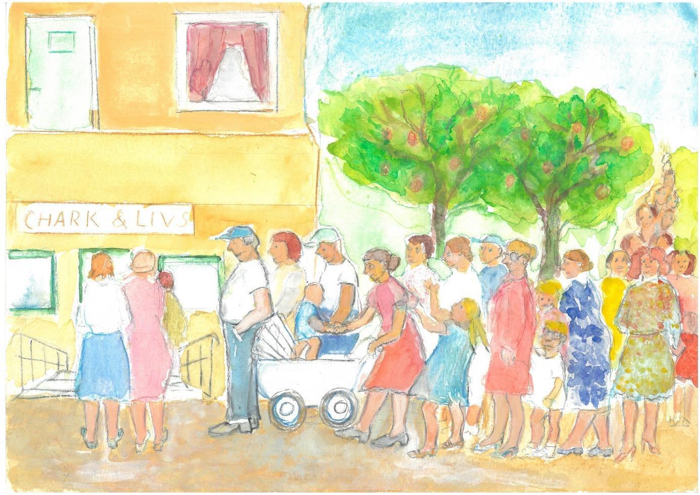 Affärensålde 15-kronorspåsar medköttvaror ochfolkstodi kö föratt handla.