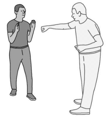 Om denandre visaraggressivitetkan du medett medvetet kroppsspråkhamöjlighetenatt dämpahansaggressivitet, kanske t.o.m. vändaden till någotkonstruktivti stället.