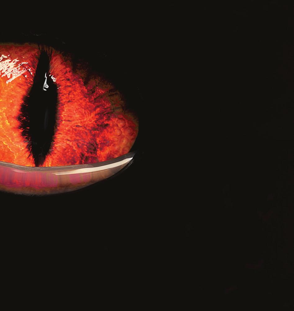Kommandot fick puppan att börja svälla. Innanför skalet växte en ormliknande varelse. Den blev större och större. Till slut var puppan så svullen att den sprängdes. Ut ringlade en svartglänsande hydra med fyra halsar. Monstret var täckt av vassa fjäll och ytterst på halsarna satt skräckinjagande huvuden med blodröda ögon som lyste hotfullt i mörkret. Ur näsborrarna kom osynlig rök.