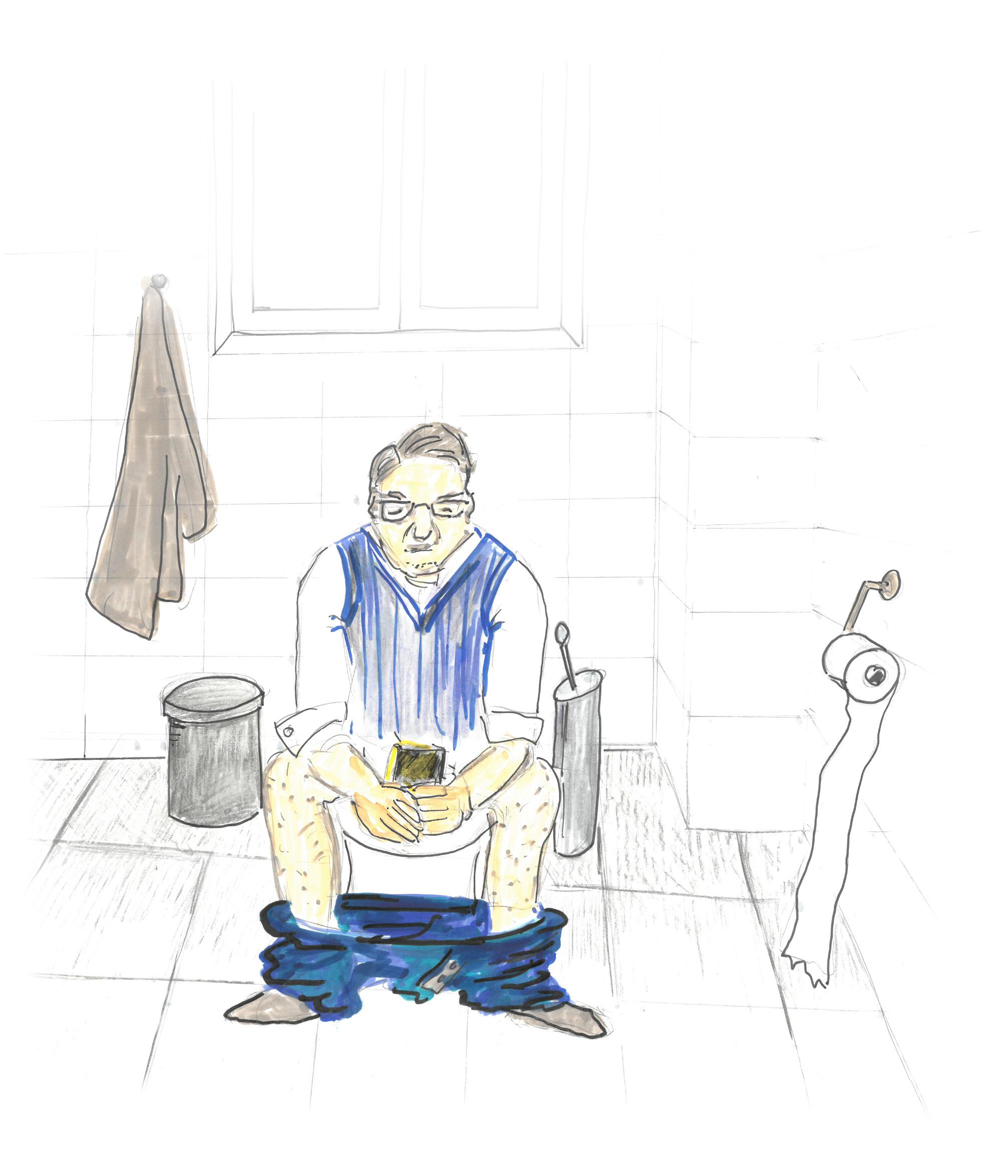 Nästan alla vuxna höll jämt i en dator eller mobil till och med när de satt på toa eller körde bil.