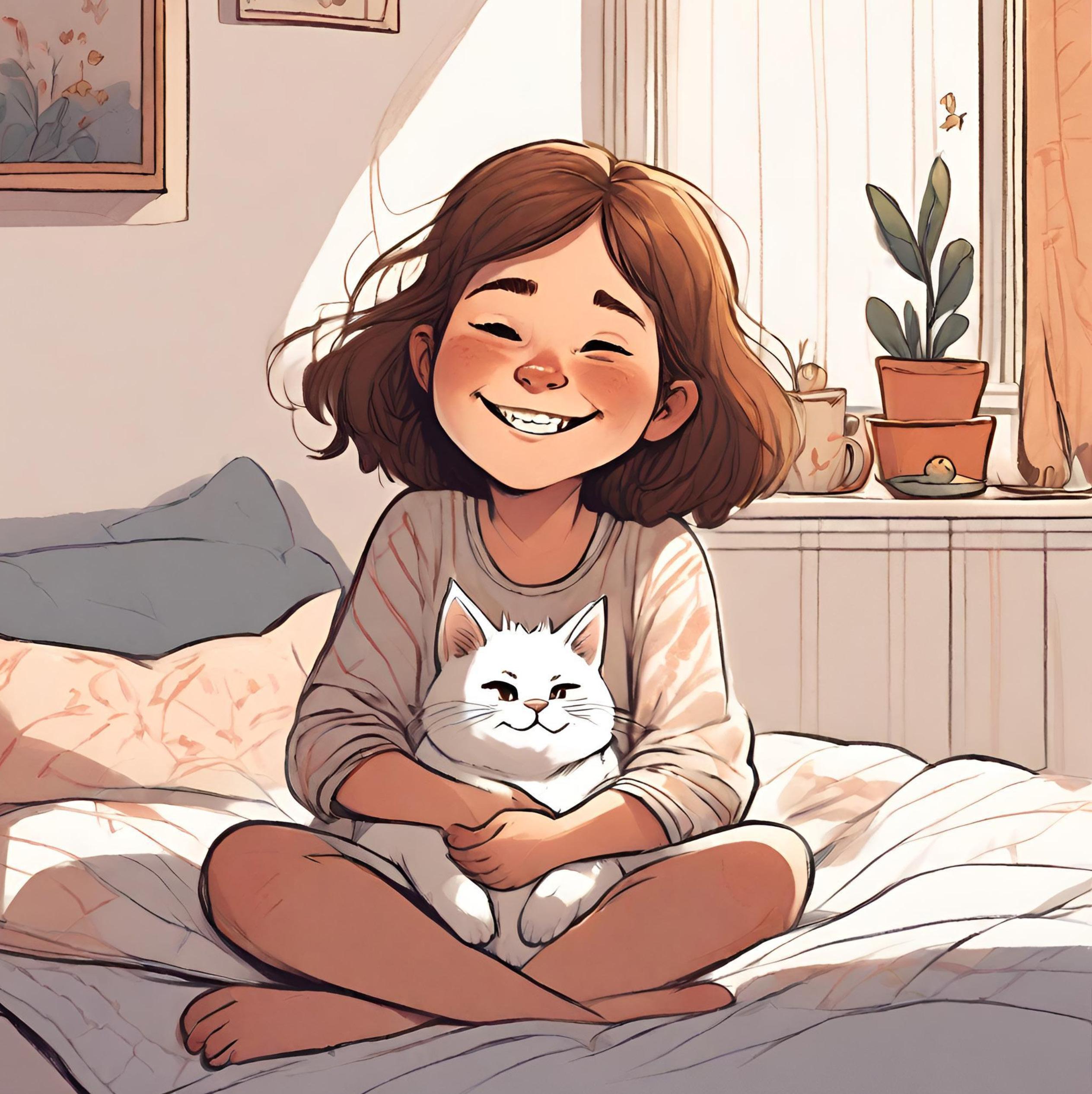 Här sitter Märta och gosar med Sigge. Märtas fluffiga och mysiga katt. Sigge har funnits jättelänge. Hela Märtas liv.