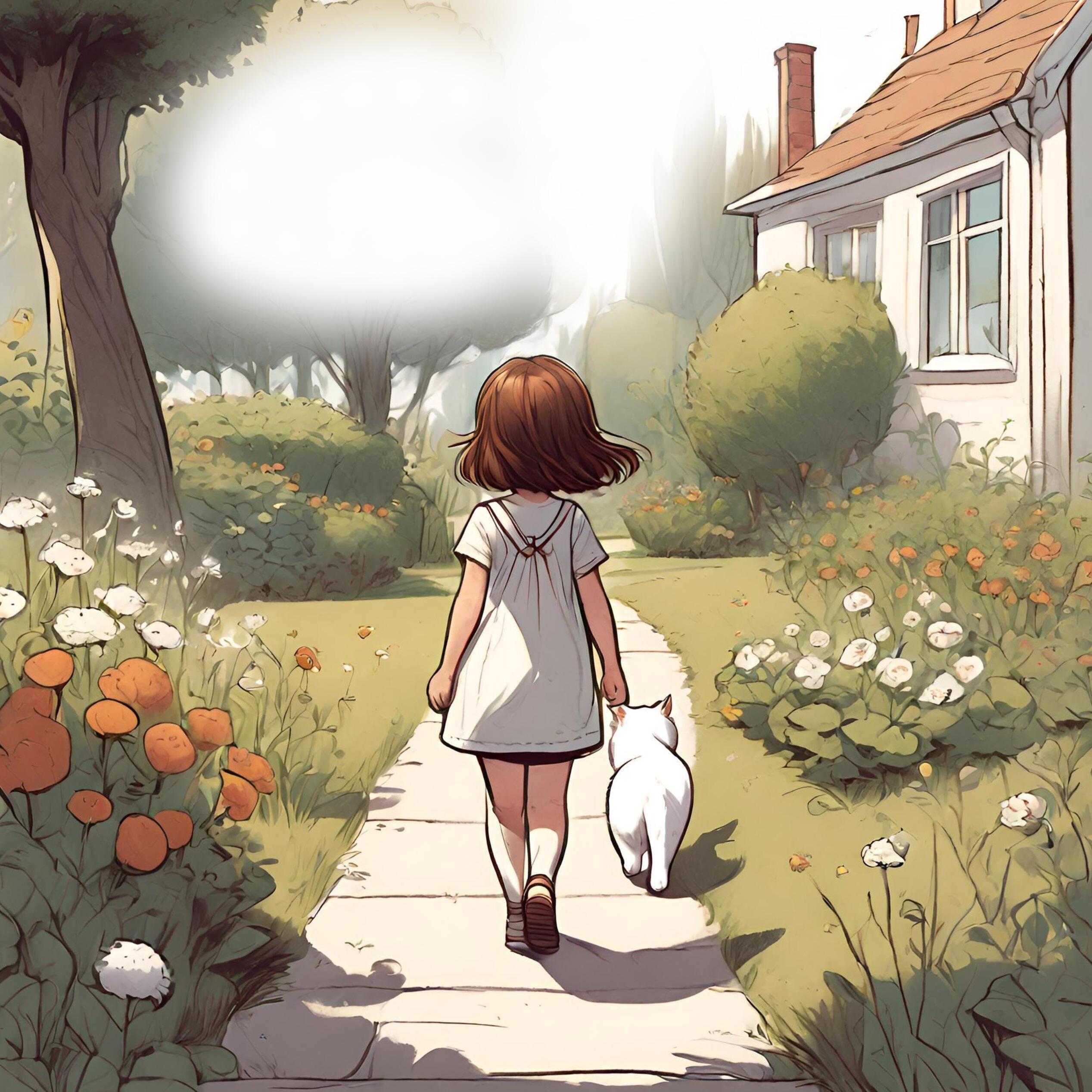 När hon går på äventyr i trädgården. Då smyger Sigge på flugor och andra småkryp i gräset. De har en favoritplats i trädgården dit de brukar gå. Stora stenen. När de sitter där uppe på toppen låtsas Märta att de bestigit ett högt berg. Och att Sigge är en tiger som ligger där bredvid henne.