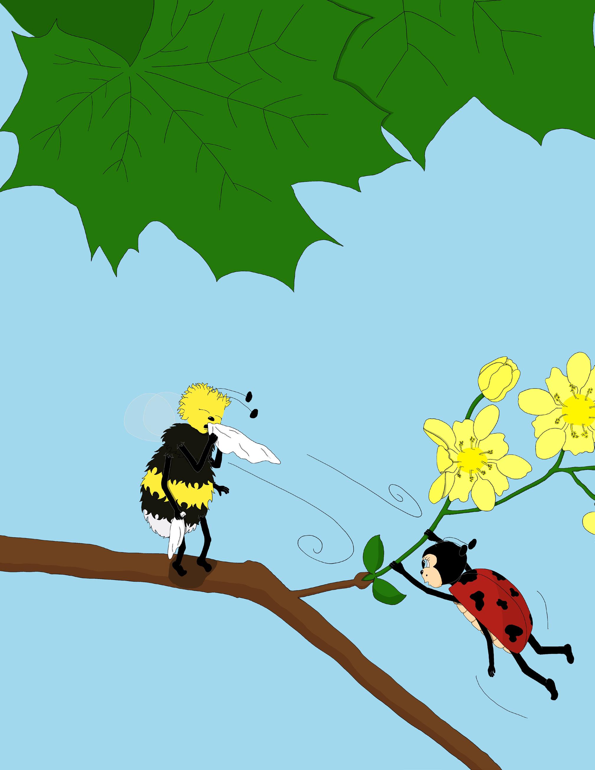 landar på blomman händer något oväntat – Lilla Humlan kan inte sluta nysa! Vad ska hon ta sig till?
