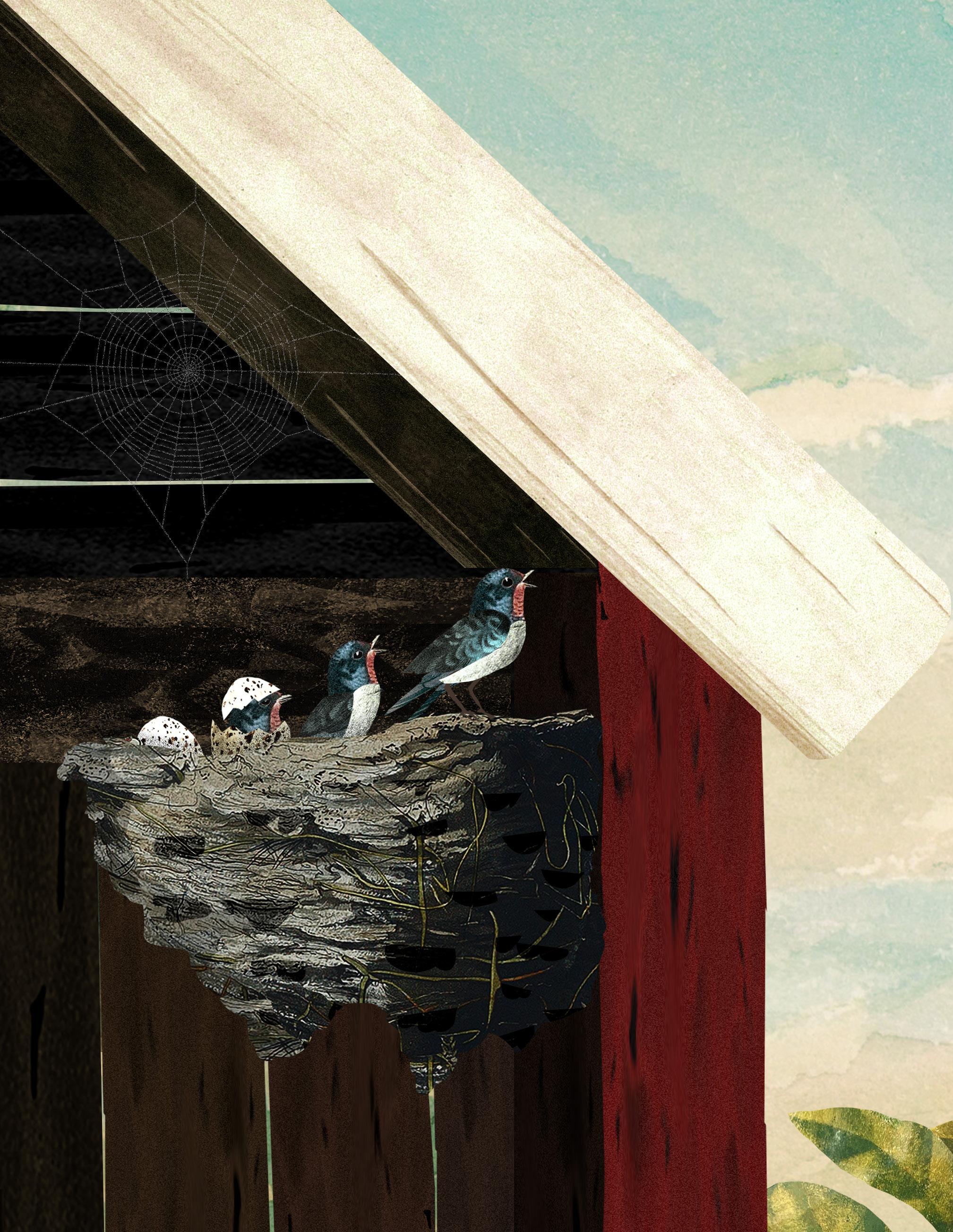 Det är tidig morgon men ändå är luften varm. En liten fågelunge ruvas fram. Mamma och pappa tar hand om mig, matar mig med smått och gott.