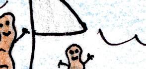 Bruno är väldigt rädd, för han kan inte simma så bra. – Hjälp! Hjälp! skriker han, men ingen hör honom.
