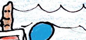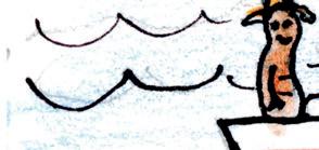 – Rädda mig! skriker Bruno och en snäll, ganska liten bajskorv i en segelbåt hjälper honom.