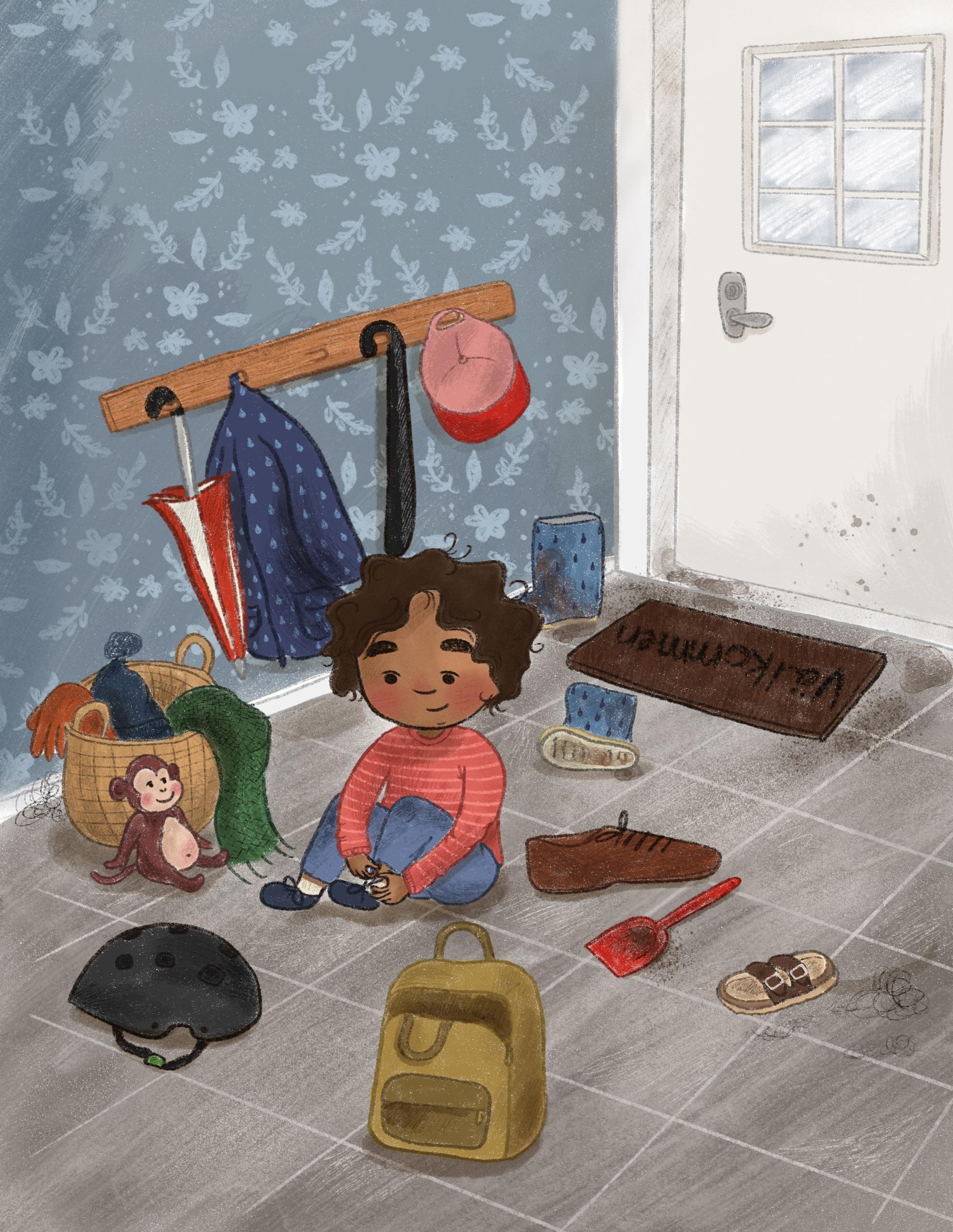 Idag ska Jamie gå till lekplatsen med sin mamma.