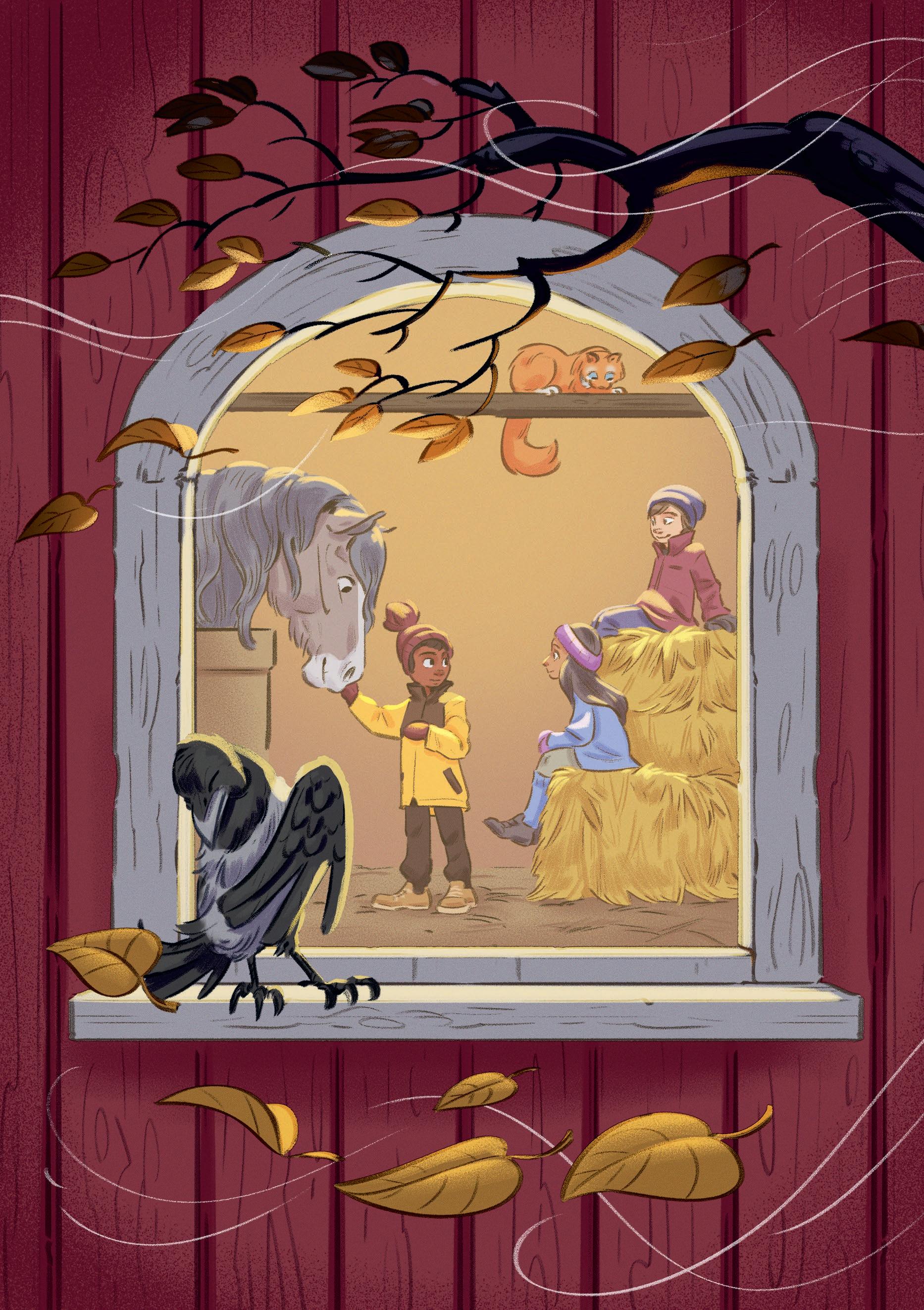 Kompisarna Idriz, Jakob och Roya är som vanligt i stallet på Bäckbys 4H-gård.