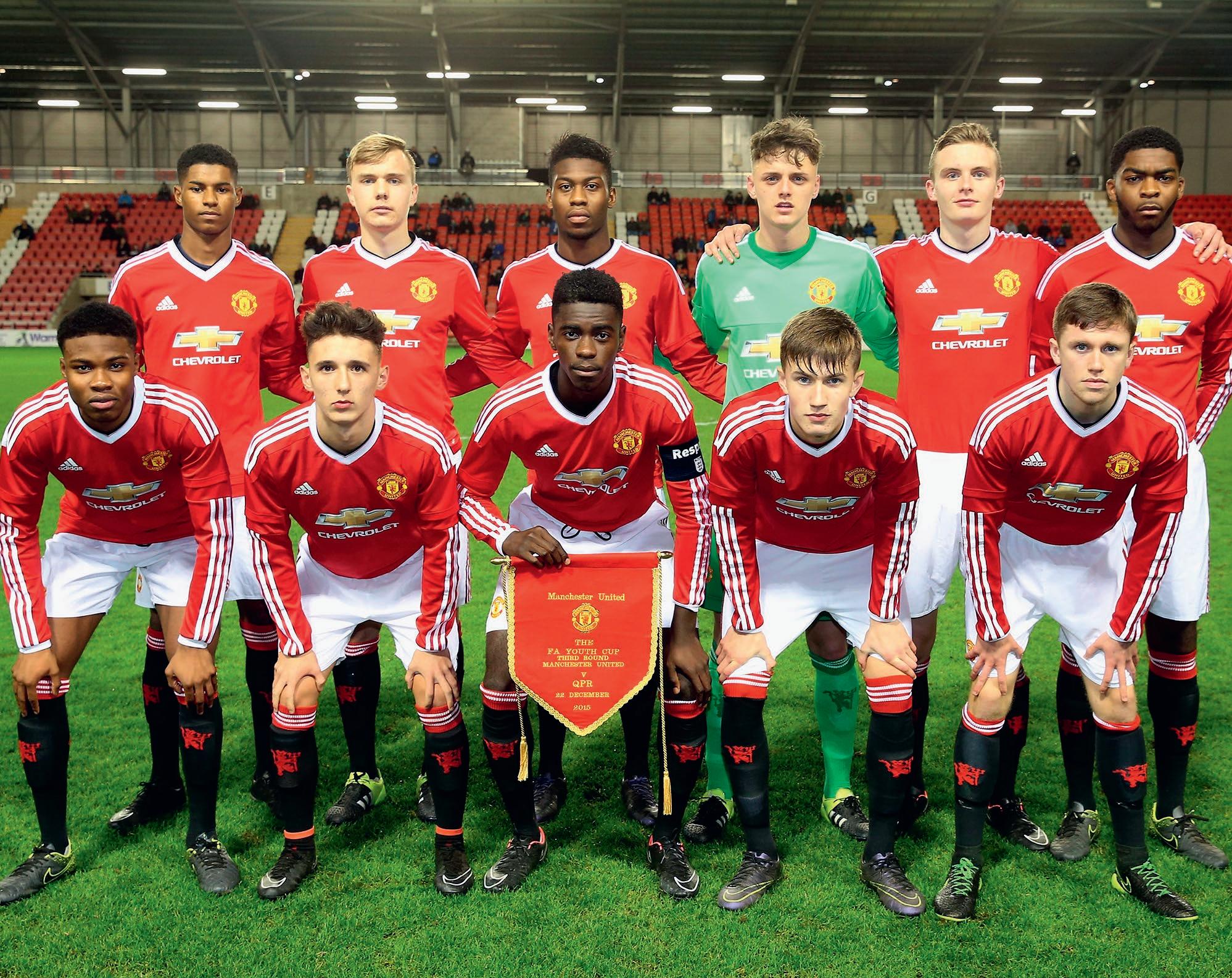 Marcus (längst bak till vänster) i Manchester Uniteds U18-lag.