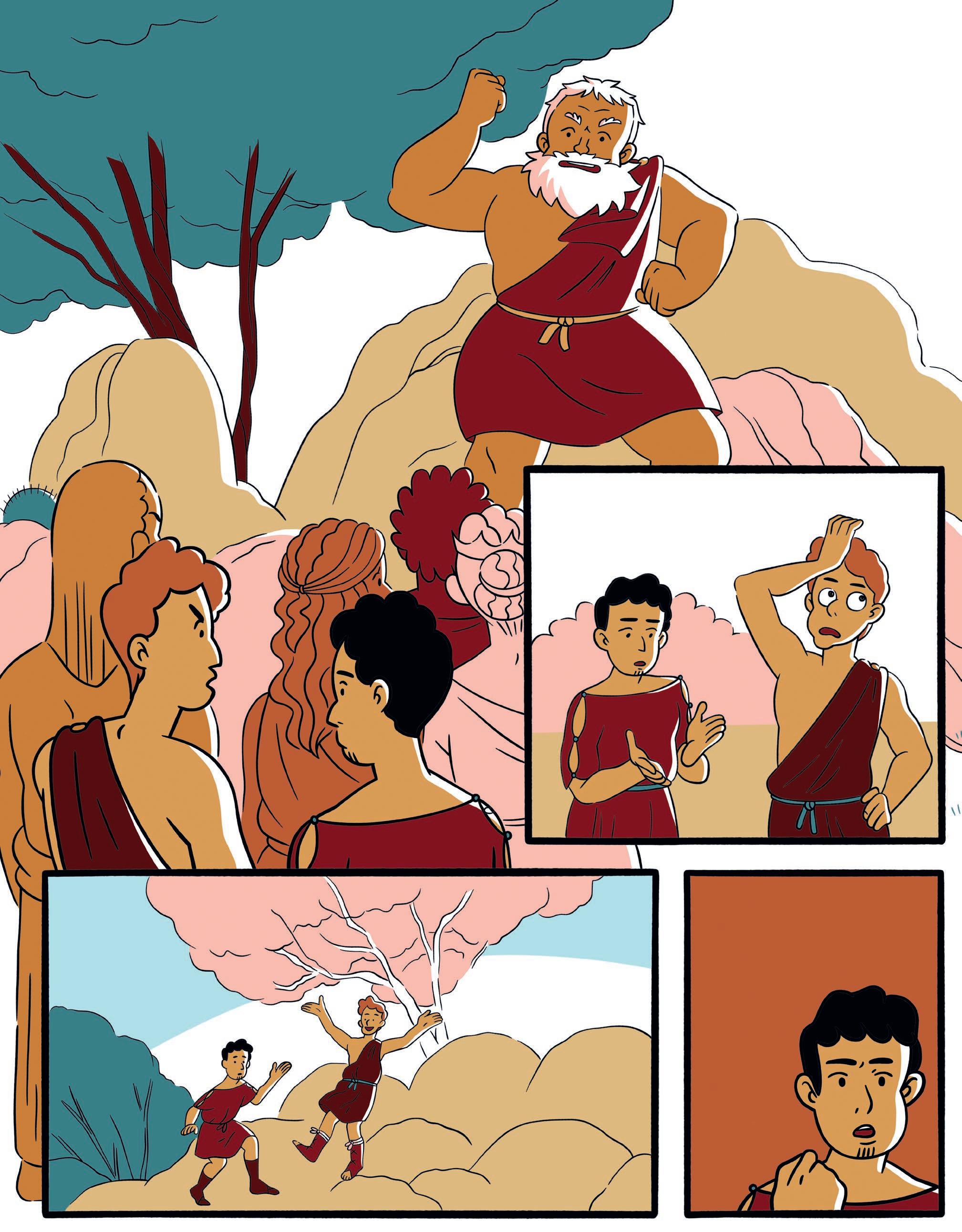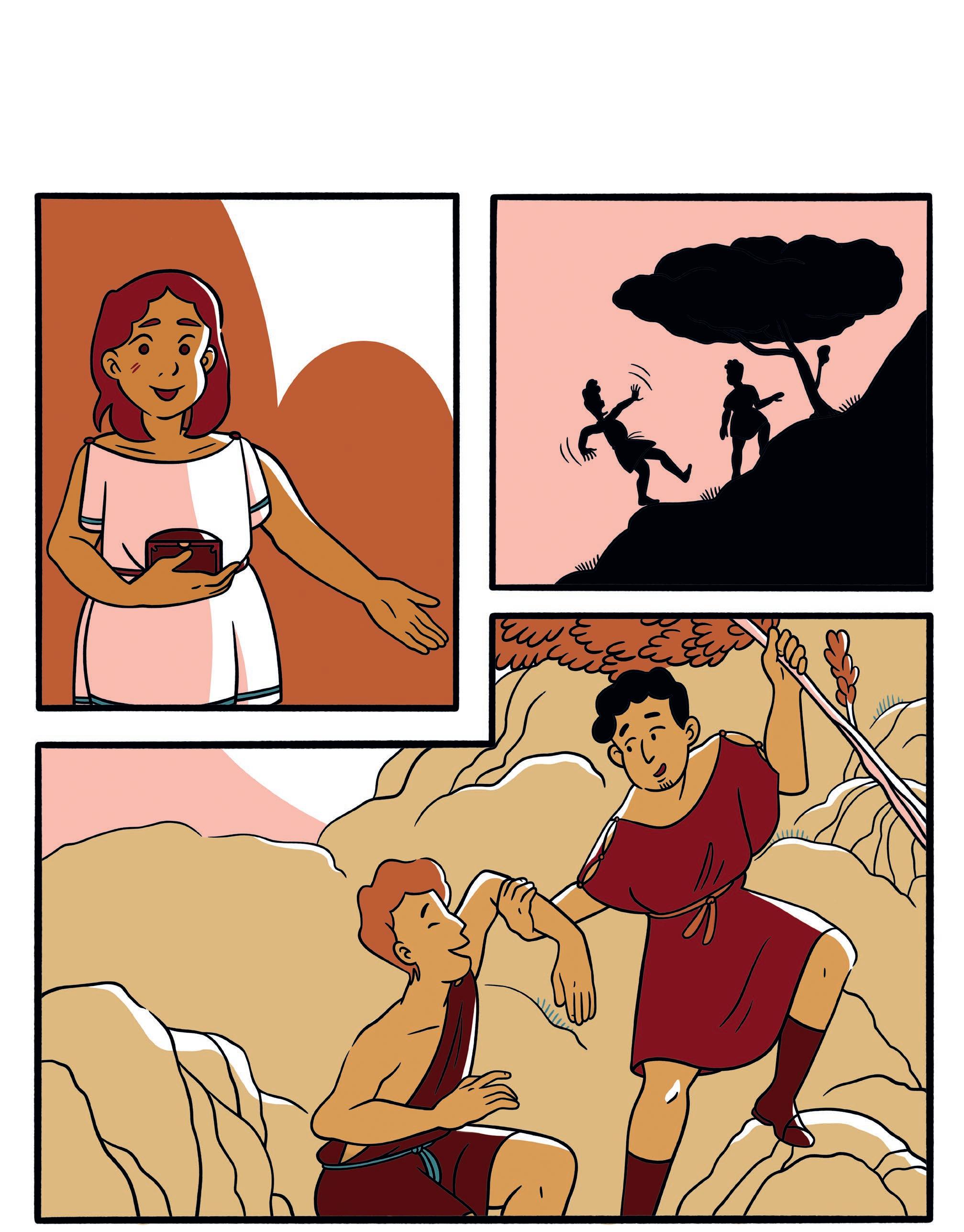 Han skickar Pandora, den första dödliga kvinnan, till jorden med en ask märkt “öppna inte”! Kan Pandora hålla sig från att öppna asken, eller blir hennes nyfikenhet för stor? I Pandoras ask presenteras den klassiska grekiska myten i serieformat.