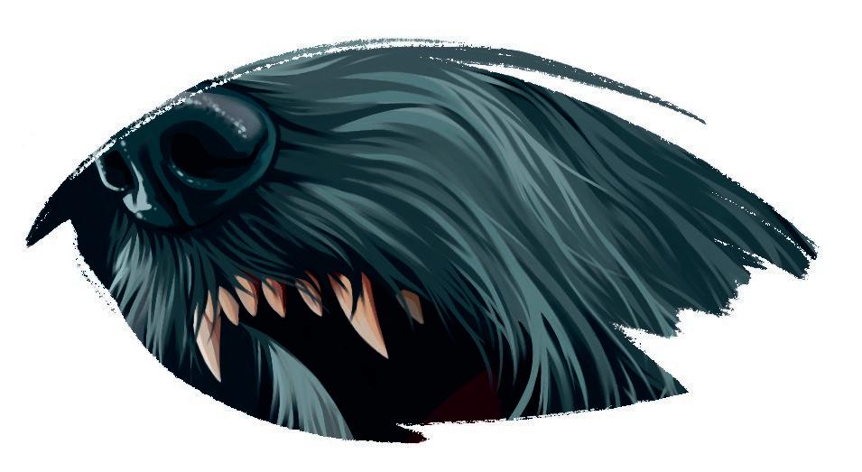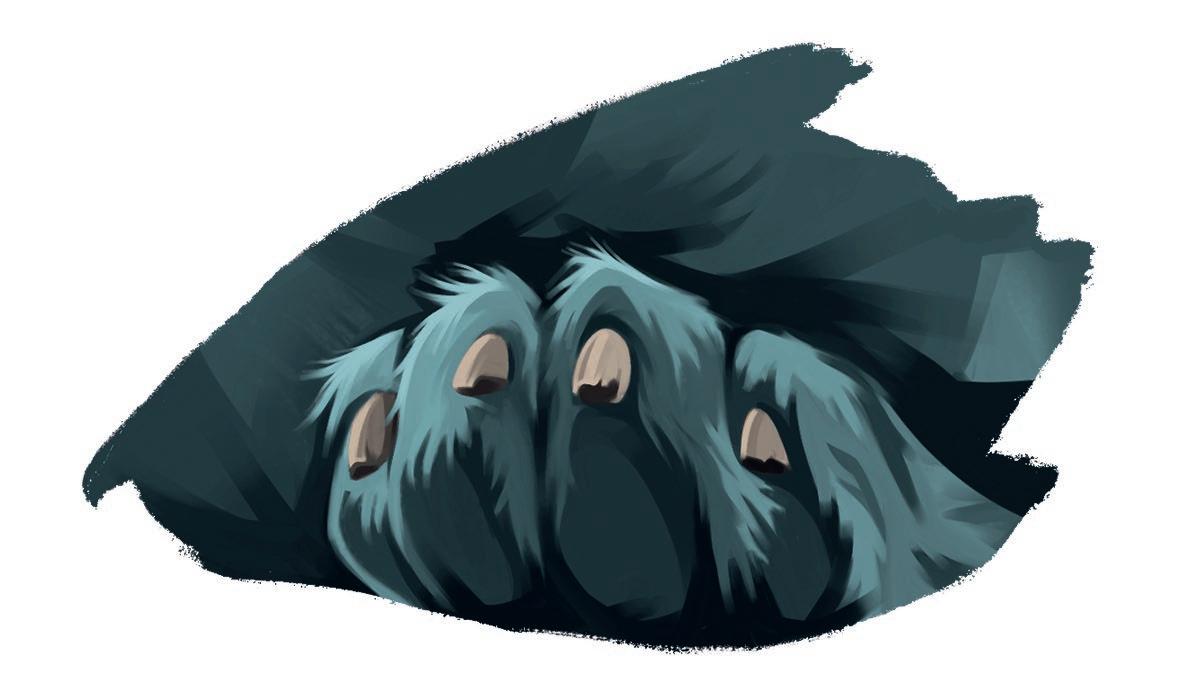 I hallen ser Dagge något hemskt. Något stort och lurvigt, med läskig blick och vassa tänder. Dagge måste fly. Han springer mot köket. Men snart är odjuret ifatt honom.