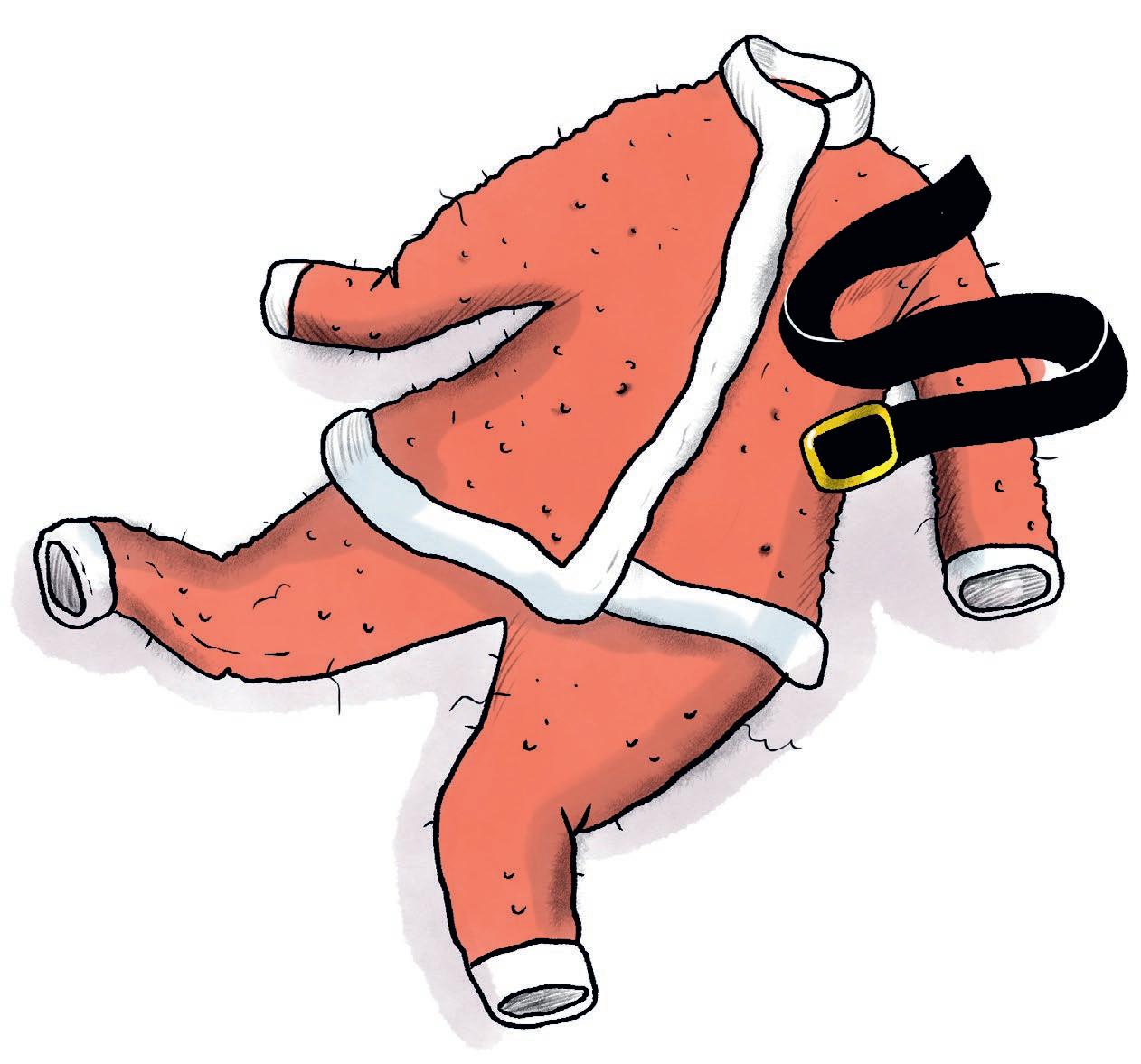 – Den här tomtedräkten, kanske, säger hon och drar i benen på en noppig tomtekostym.