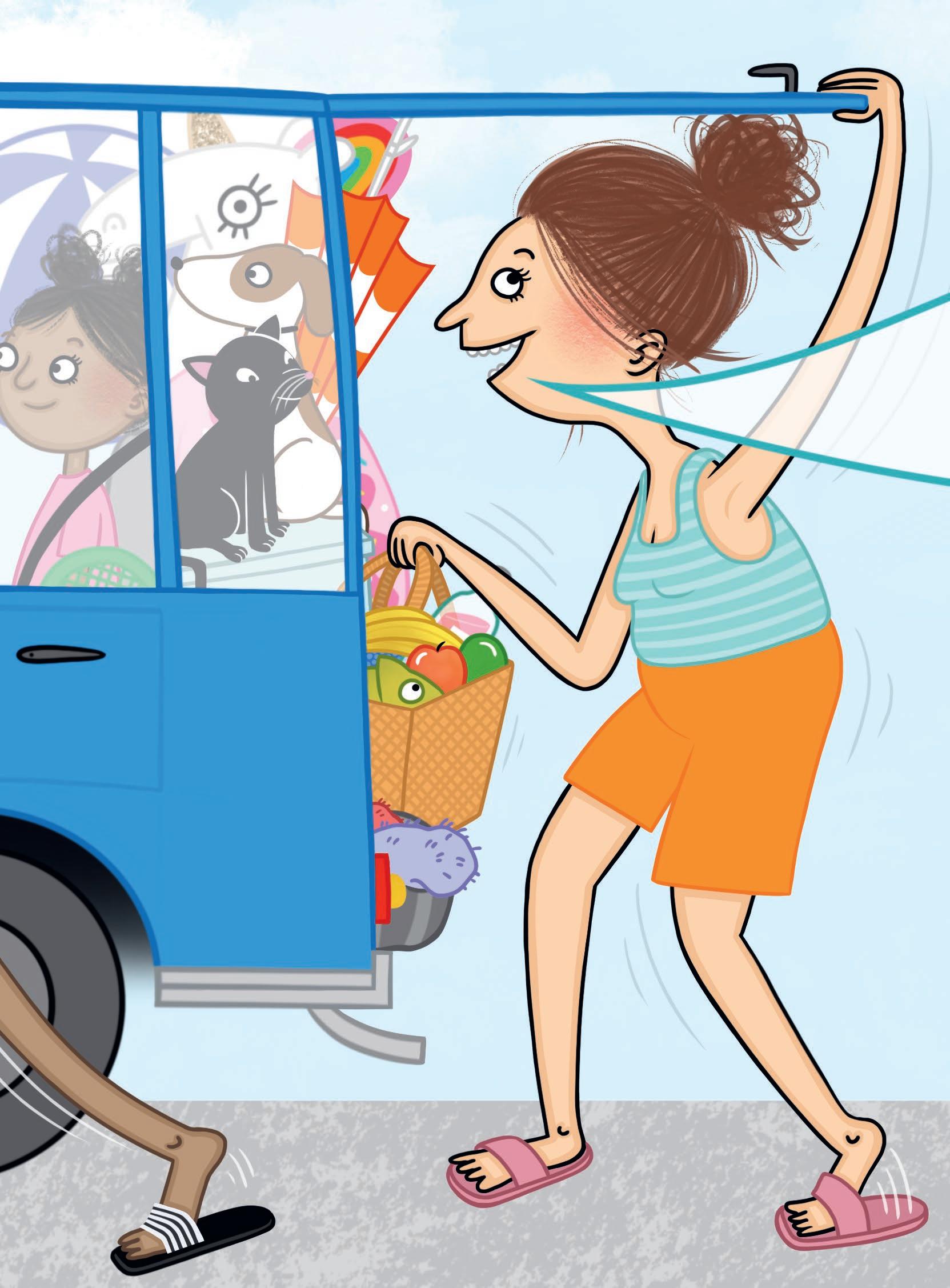Hela familjen ska åka till stranden och bada.