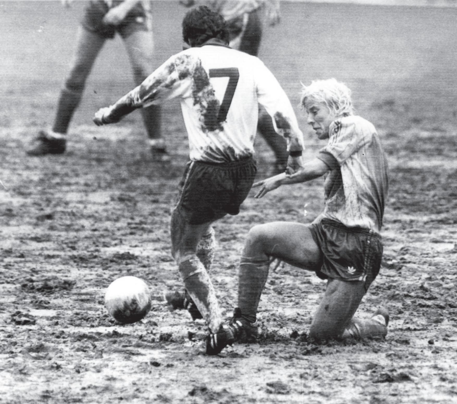 Det var blött och lerigt under EM-finalen i England.