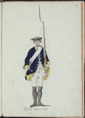 Bild 3ÖstgötaRegementet. Soldat medgevär. Uniform modell 1765.