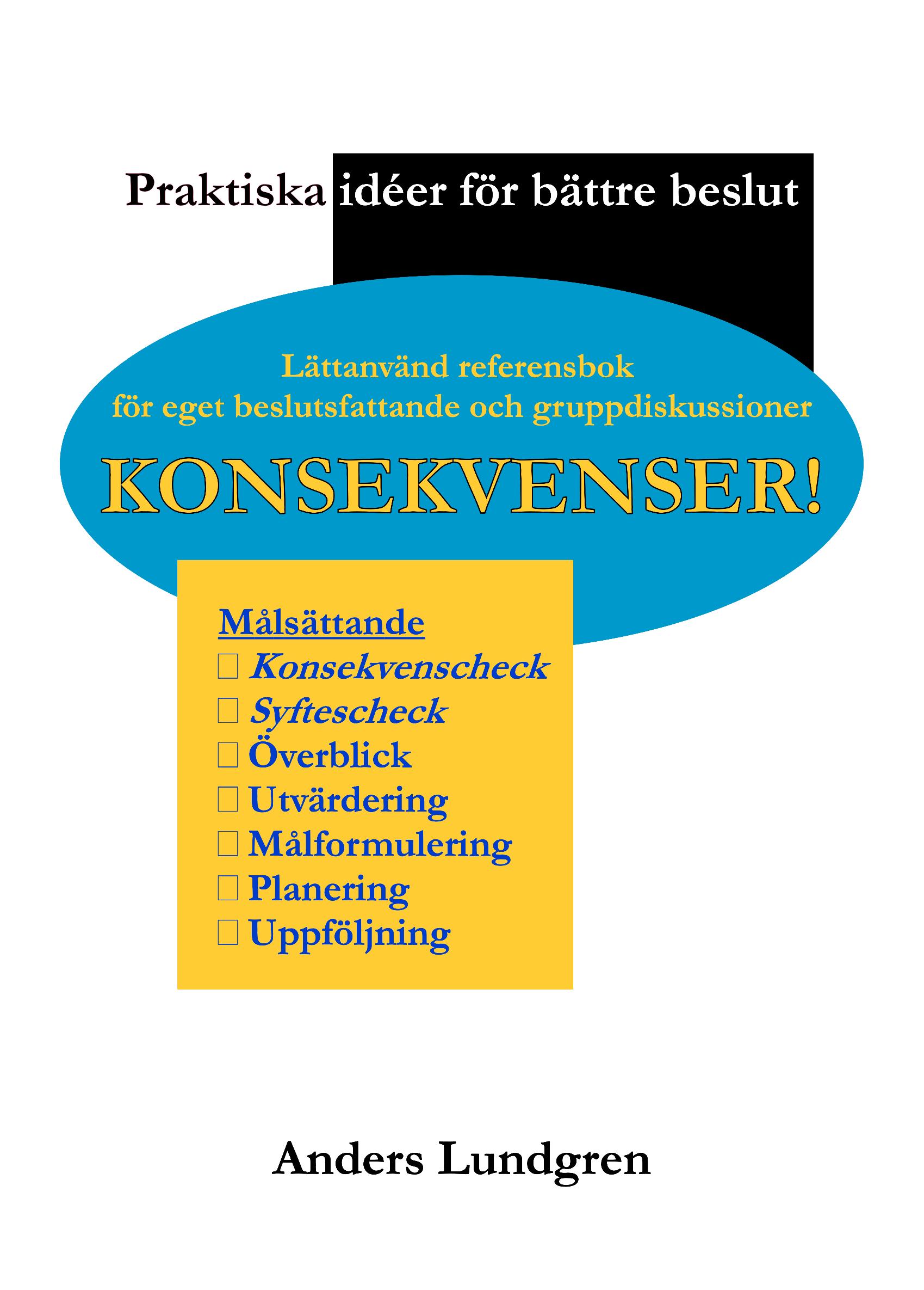 Konsekvenser!ärenuppföljningavmintidigarebokKlarhet!–Enklaverktygförbättremål och planer.Den nyabokenärmer överskådlig och består av många korta avsnitt: du kan exempelvisläsaomhuranonymiseringkanhjälpadigattfattamerobjektivabeslutochom hurbegränsningarkanhjälpadigattavgöravadsomärmestväsentligtiengivensituation.
