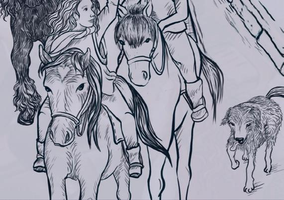 Drottning Blanca satt vidsitt skrivbordi Marmorslottet.Hon tänkte på sinförstatid somdrottning. Eftersom honvar så ung, hade honförstått att hon skulle behöva ha brarådgivare kringsig.Hon tänkte med tacksamhet på sinkloka duva,Snöfjun.Han hade en sällsamgåvaatt leda hennenär honvände sinuppmärksamhetmot honom. Hankunde kuttra mjuktoch se djuptini Blancasögon. Menhan kundeockså darraoch flackamed blickenvid faror. Snöfjun varfrånbörjanmorsduva, men morfanns inte mer. Blanca suckadedjupt.