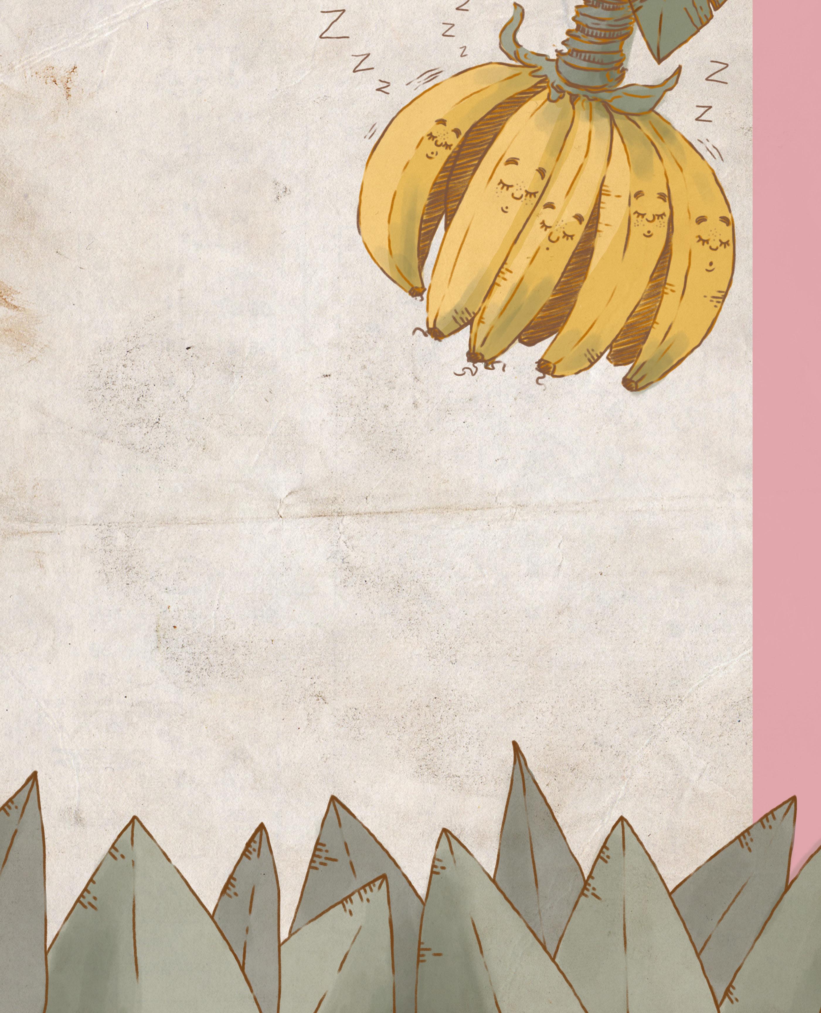 Bananerna växer ut från den stora bananblomman och blir fler och fler. På en bananstock kan det växa upp till tvåhundra bananer. Tillsammans kan de väga hela 50 kg. Hur många bananer orkar du bära?