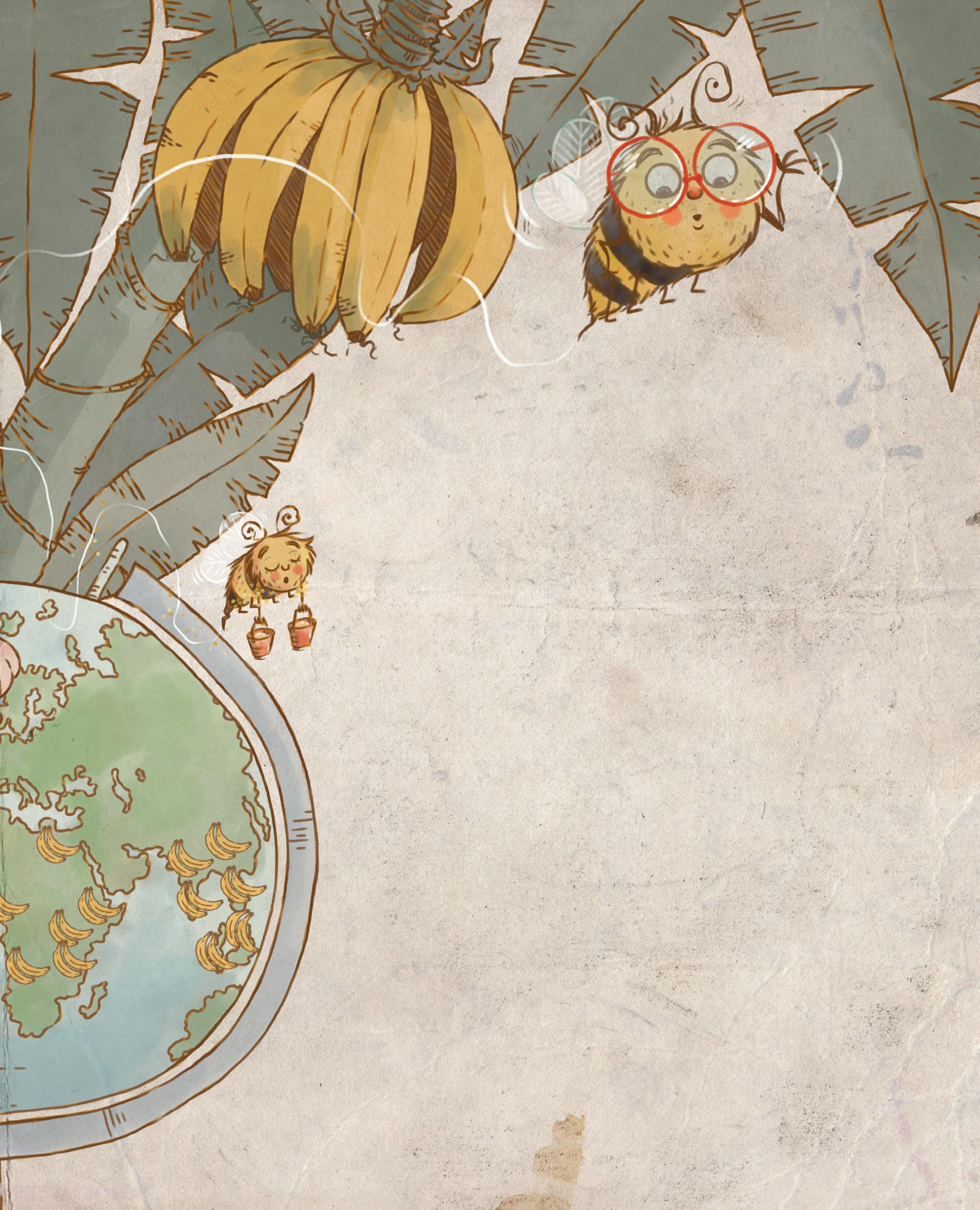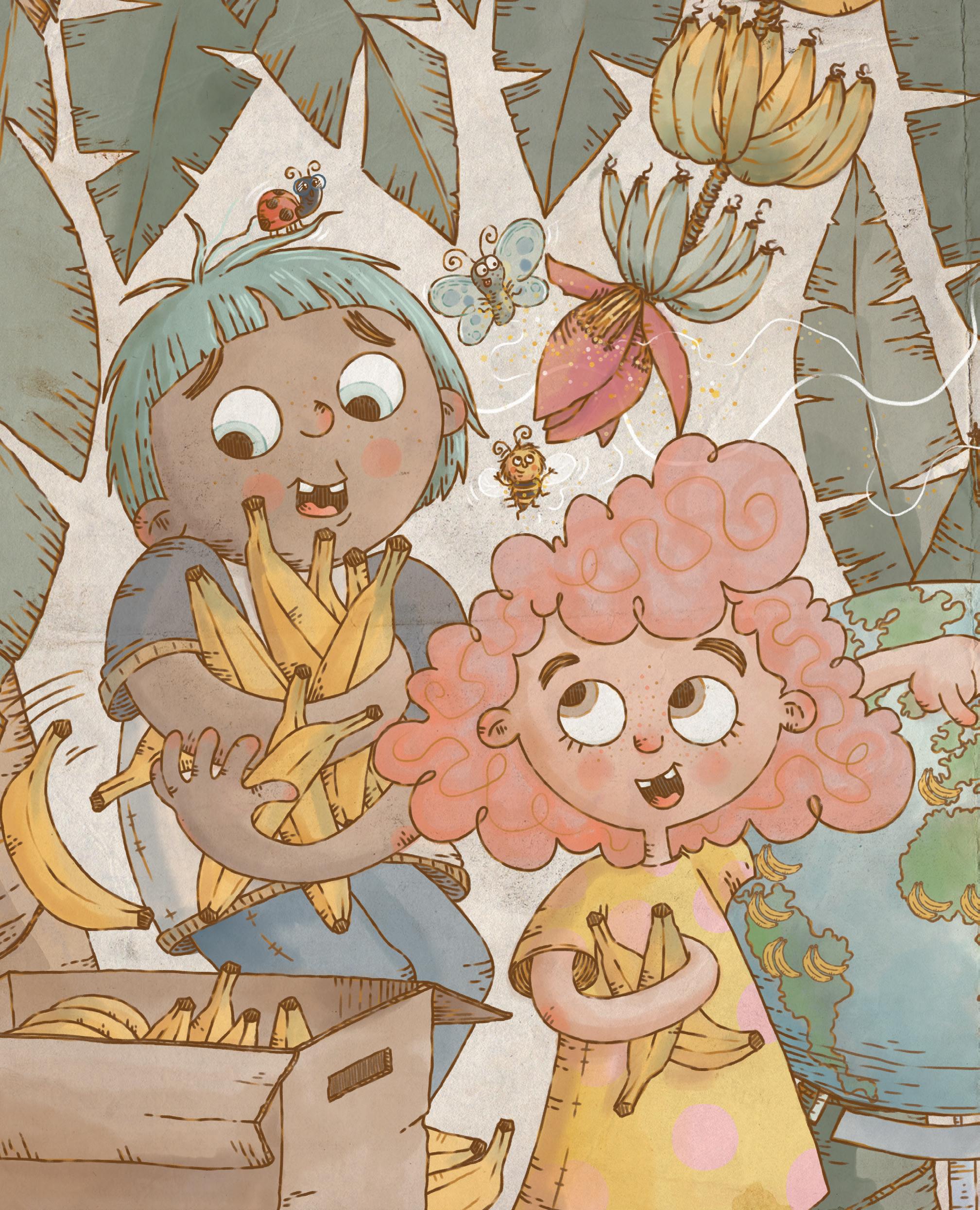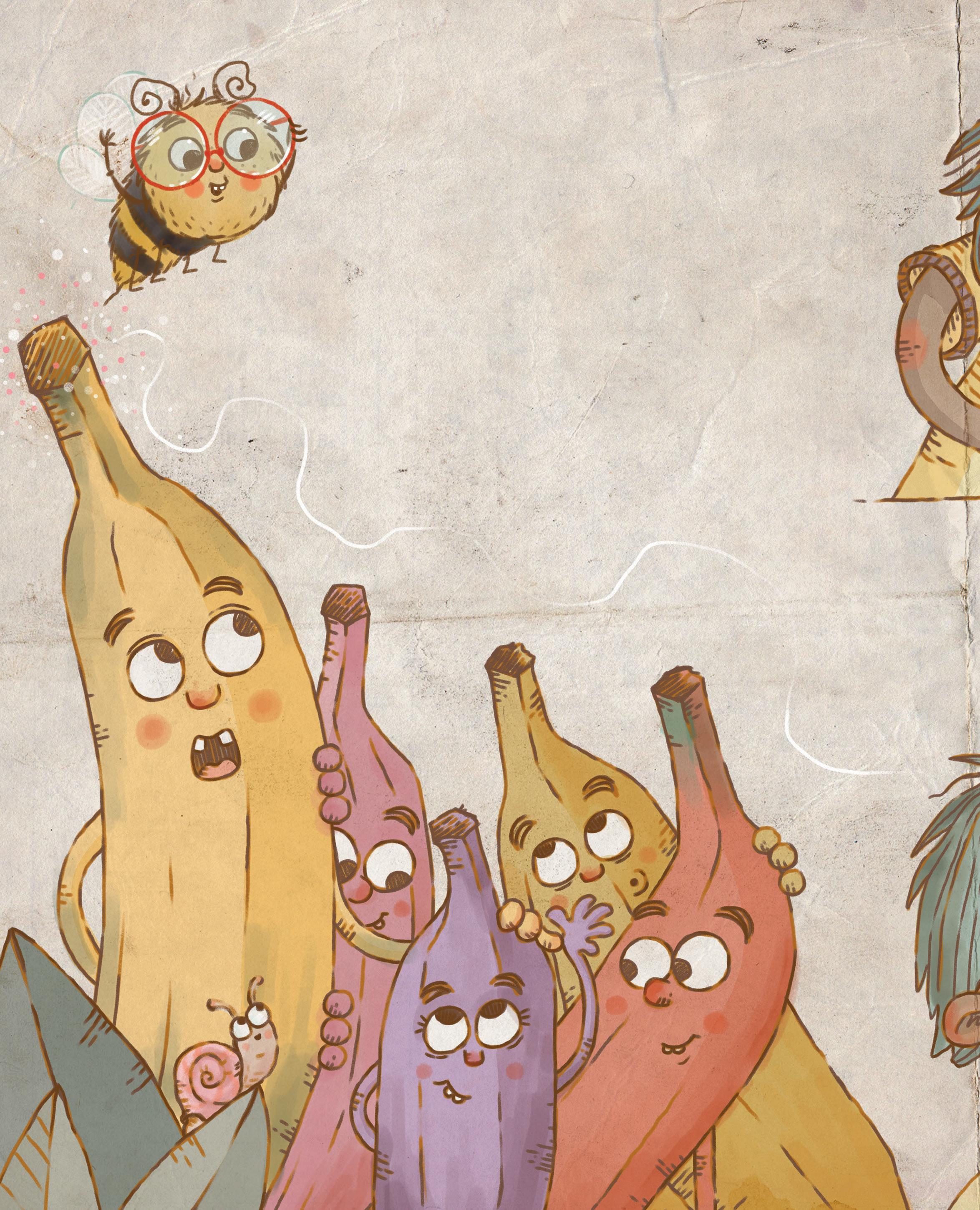 När bin och fjärilar letar mat i bananblomman fastnar pollen på deras kropp. De flyger vidare och får då med sig pollen från en blomma till en annan. Detta kallas pollinering och gör att växterna kan bära frukt.