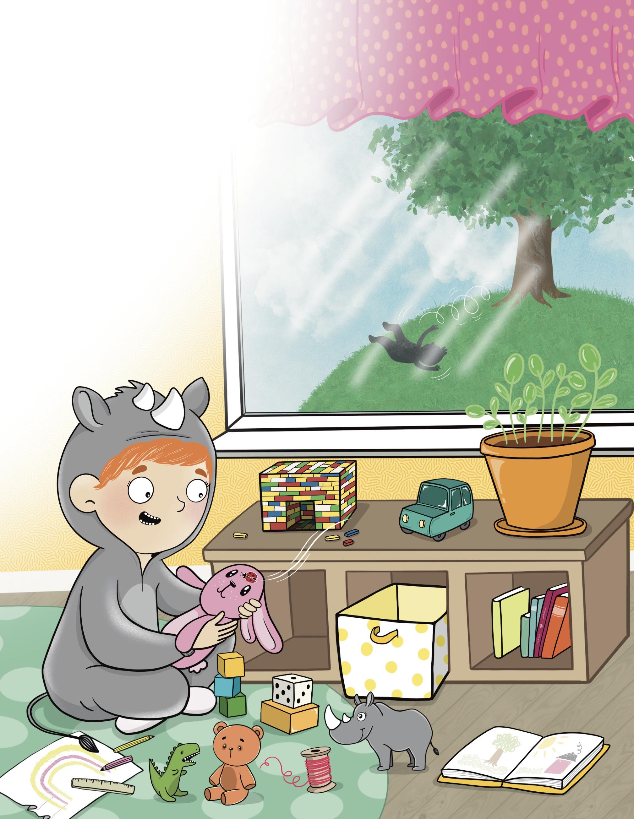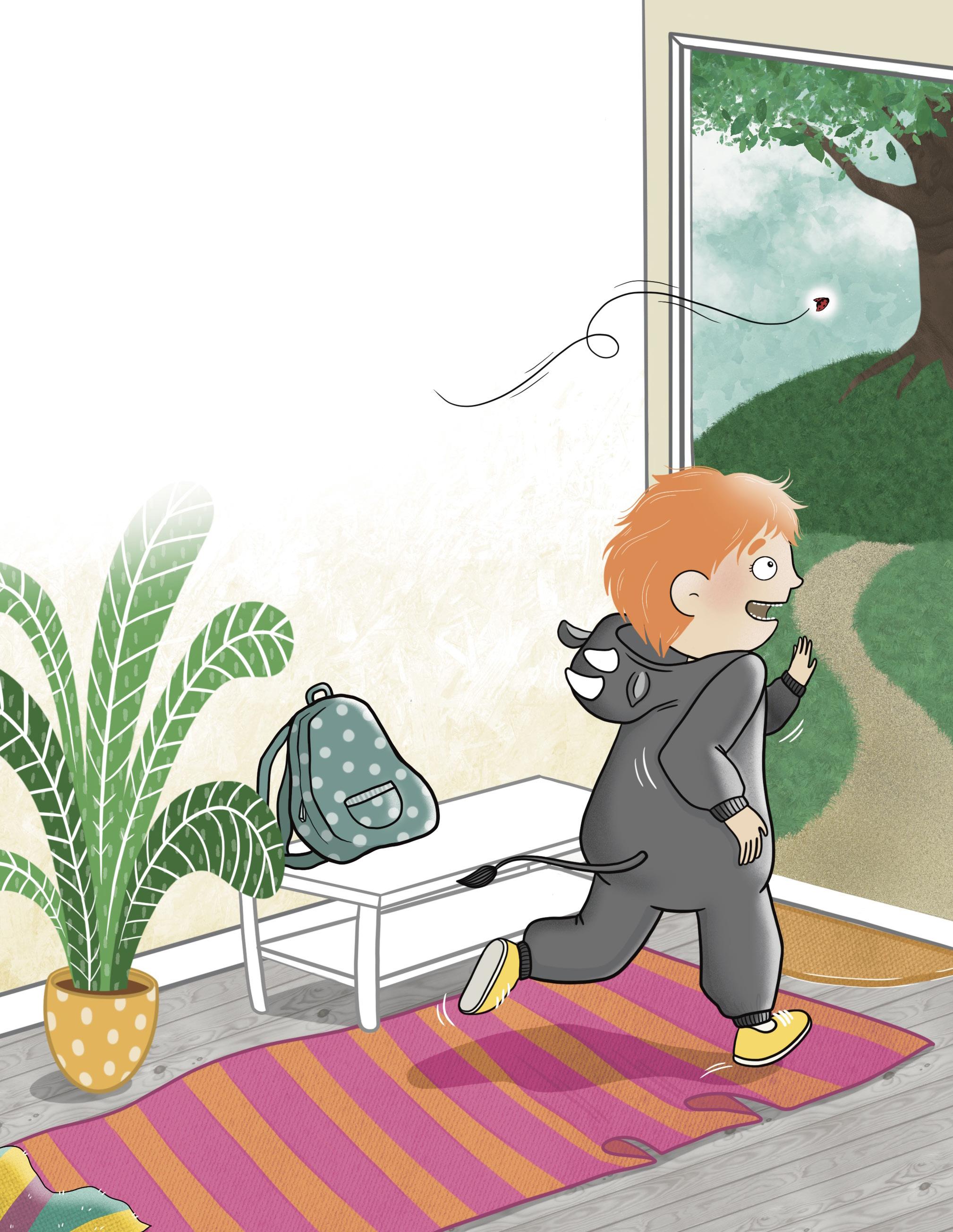 Noa lekte noshörning på sitt rum när en nyckelpiga plötsligt kom flygande. Den landade på ett av Noas gosedjur.