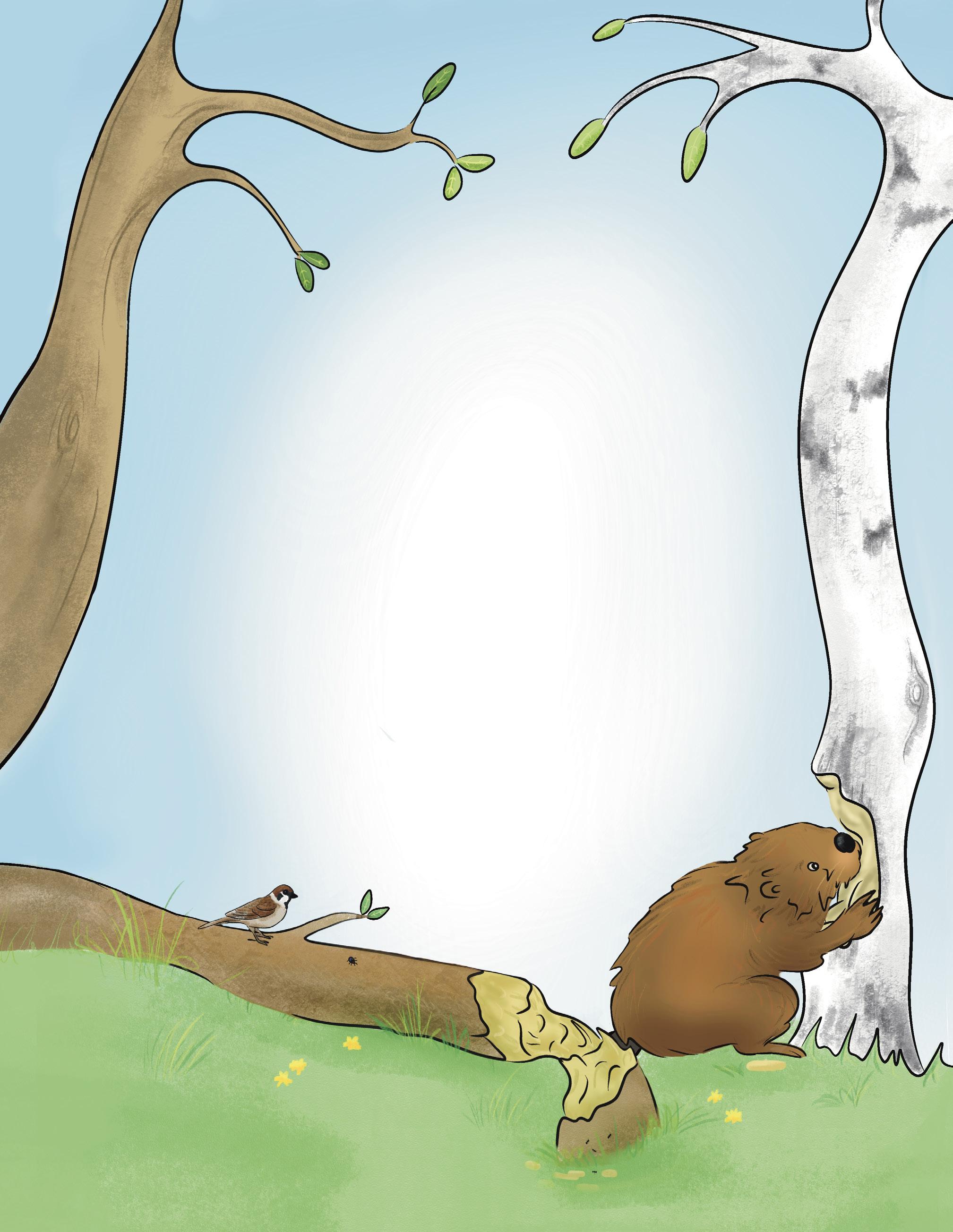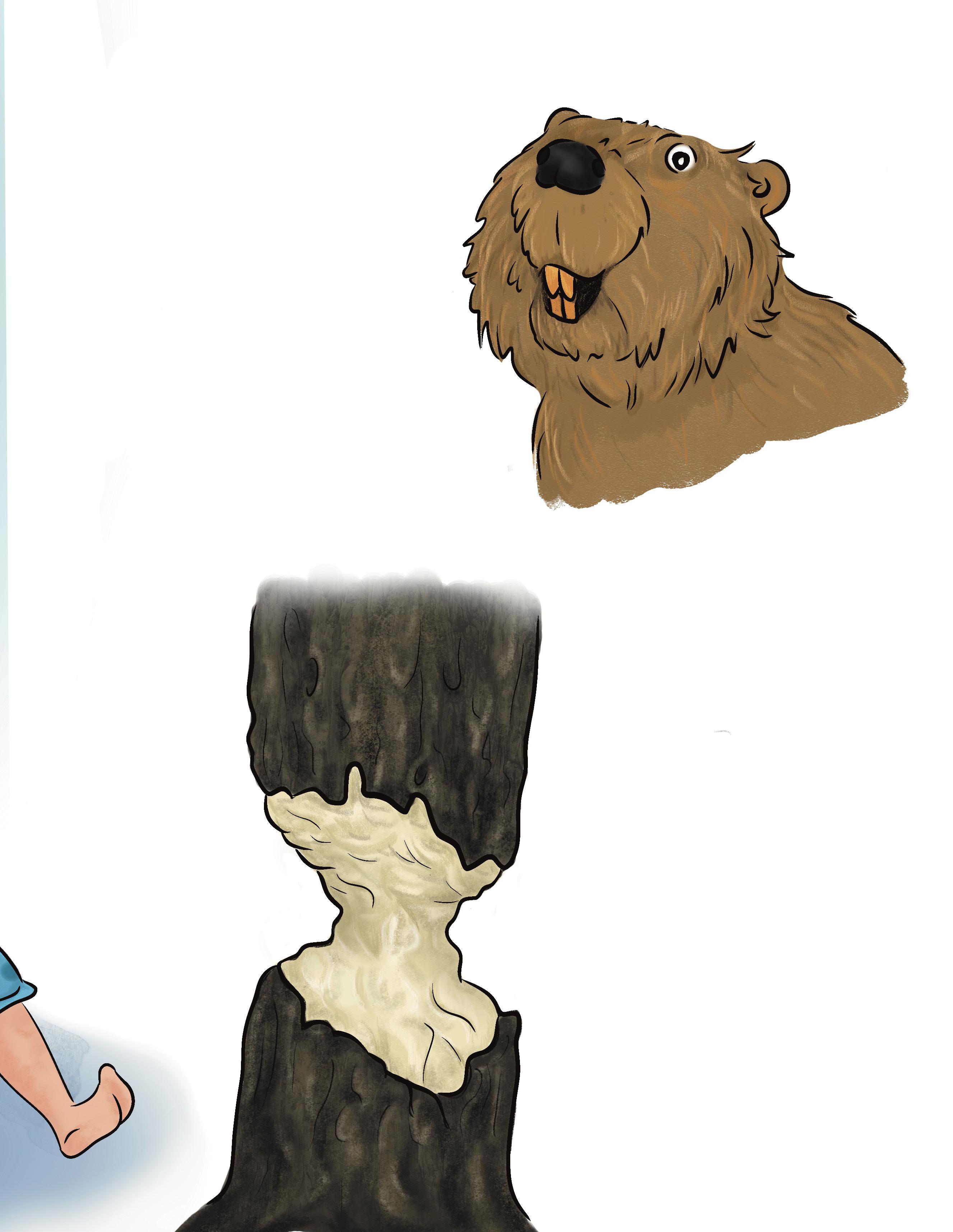 Precis som andra gnagare har bävern väldigt långa framtänder. De växer hela livet, men bävern gnager så mycket att tänderna slipas ner. Och tur är väl det, annars skulle de bli jättelånga! De gnager gärna på stora träd. Det syns tydligt när en bäver varit framme!