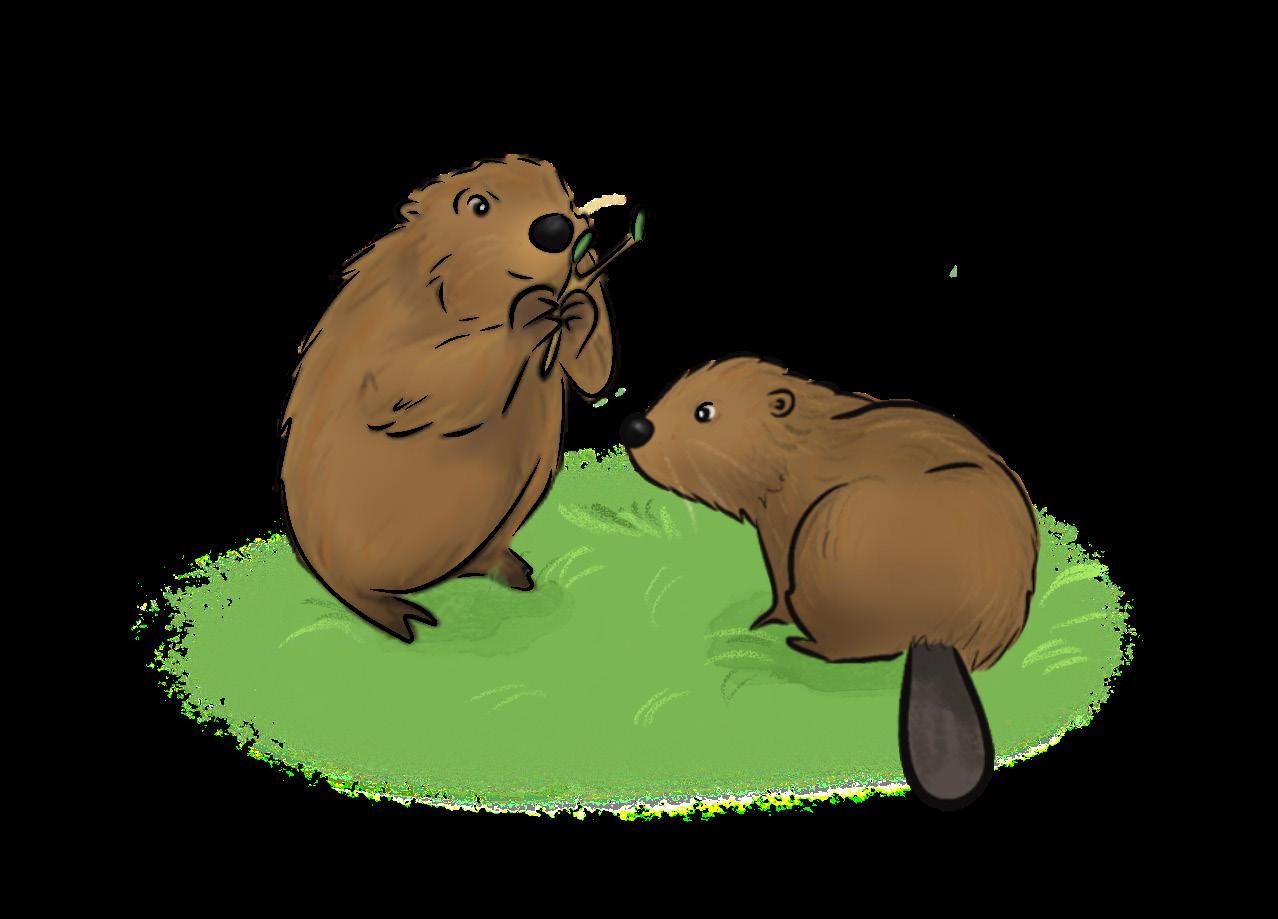 I varje hydda bor ett bäverpar med ungar i olika åldrar.