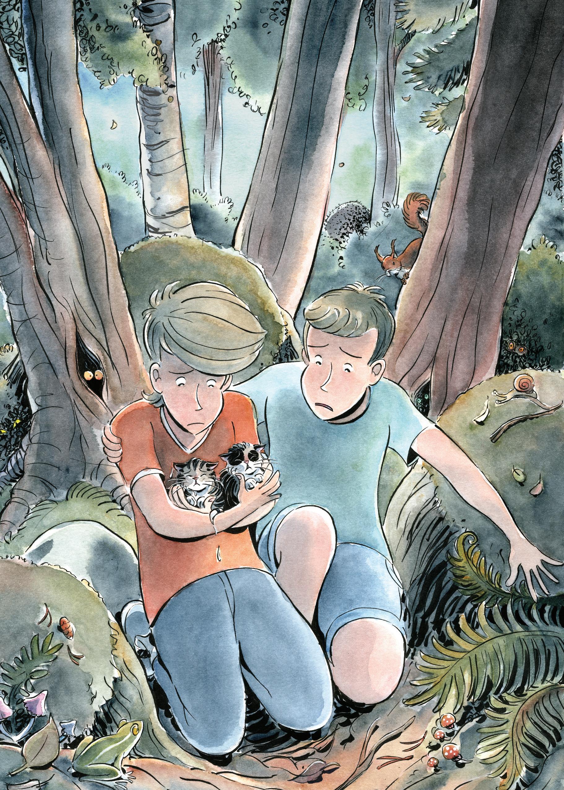 Bröderna Jakob och Joakim hittar kattungar i skogen utanför Björkviken. Killarna bestämmer sig genast för att försöka rädda dem. Men vem är det egentligen som har lämnat kattungarna? Finns det något som kan leda killarna till den skyldige? Och var finns kattungarnas mamma?