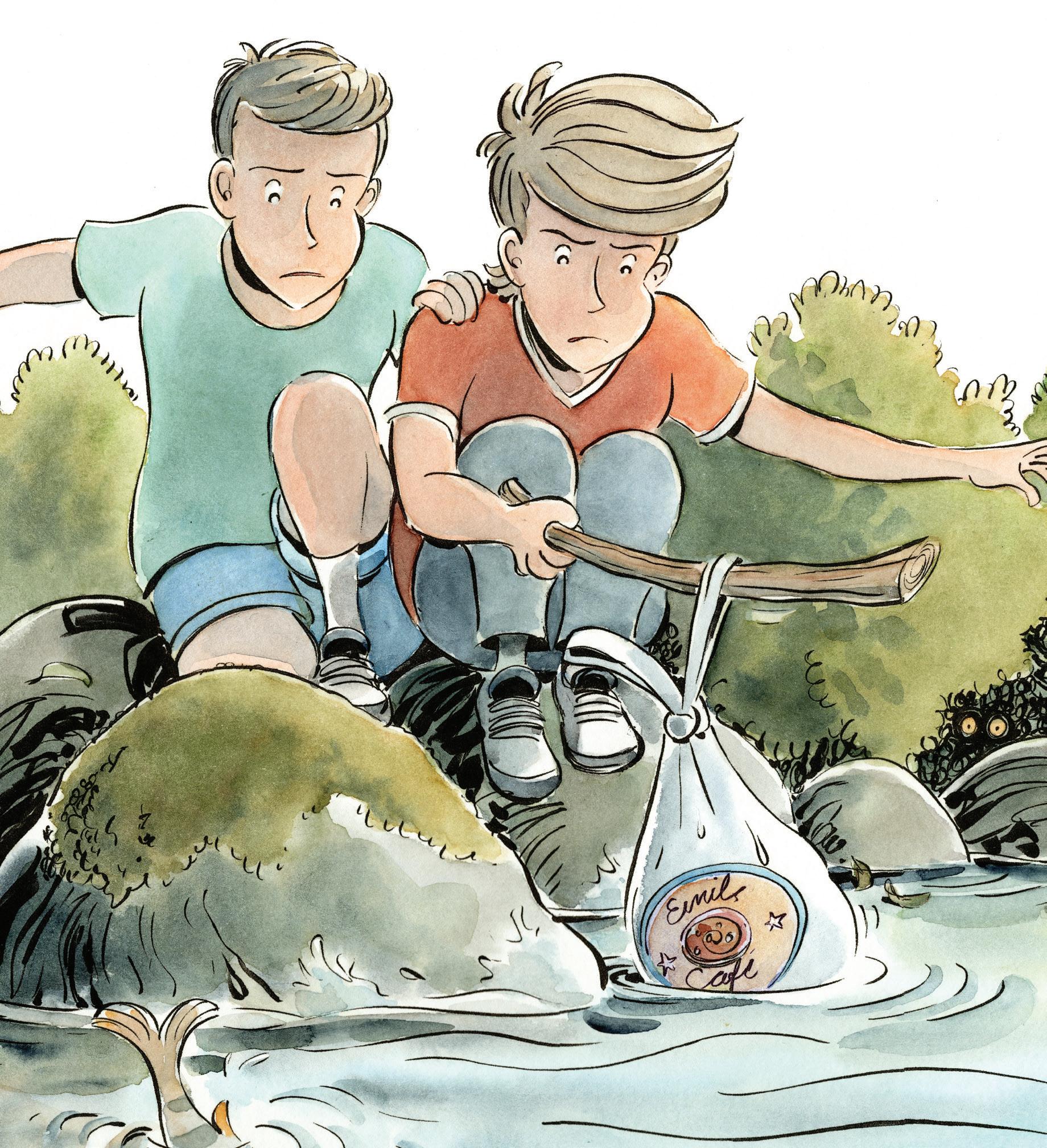 Han ser att Joakim är svart i ögonen och ilsket biter ihop käkarna. Han förstår sin bror. Plast i naturen är inte alls bra.