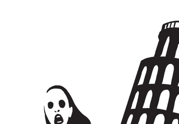 – Det har lutat så i århundraden. Risken att det skulle rasa är en på miljarden. Kom igen nu, Kim.
