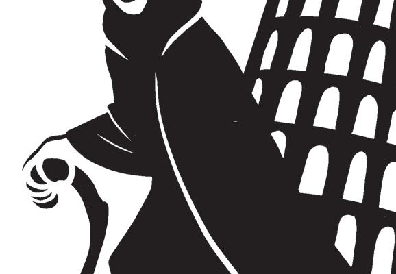 Gränden blev bredare och bredare. Till slut kom jag fram till ett öde torg, som var format som en hästsko. Öppningen på torget vette mot en stor gräsmatta och där, i bortre änden, stod det lutande tornet. Nu när det hade mörknat såg tornet annorlunda ut.