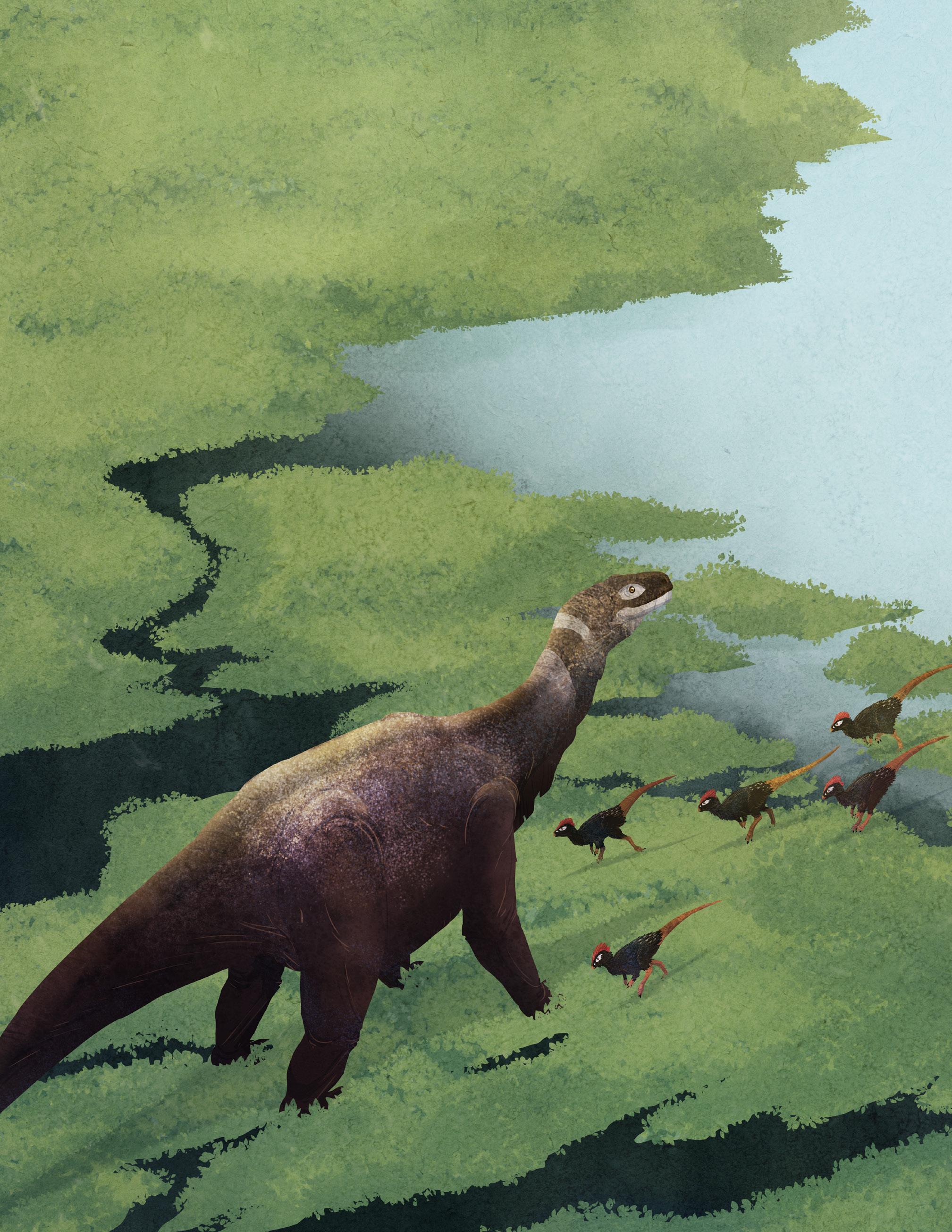 När de sista solstrålarna sakta försvinner bortom horisonten avslutar Aardonyx-honan sitt kvällsdopp. Hon börjar röra sig in mot den täta skogen ihop med resten av sin flock. Genom att äta och trampa ner träd och buskar påverkar de skogens utseende och gör plats åt andra djur och växter.