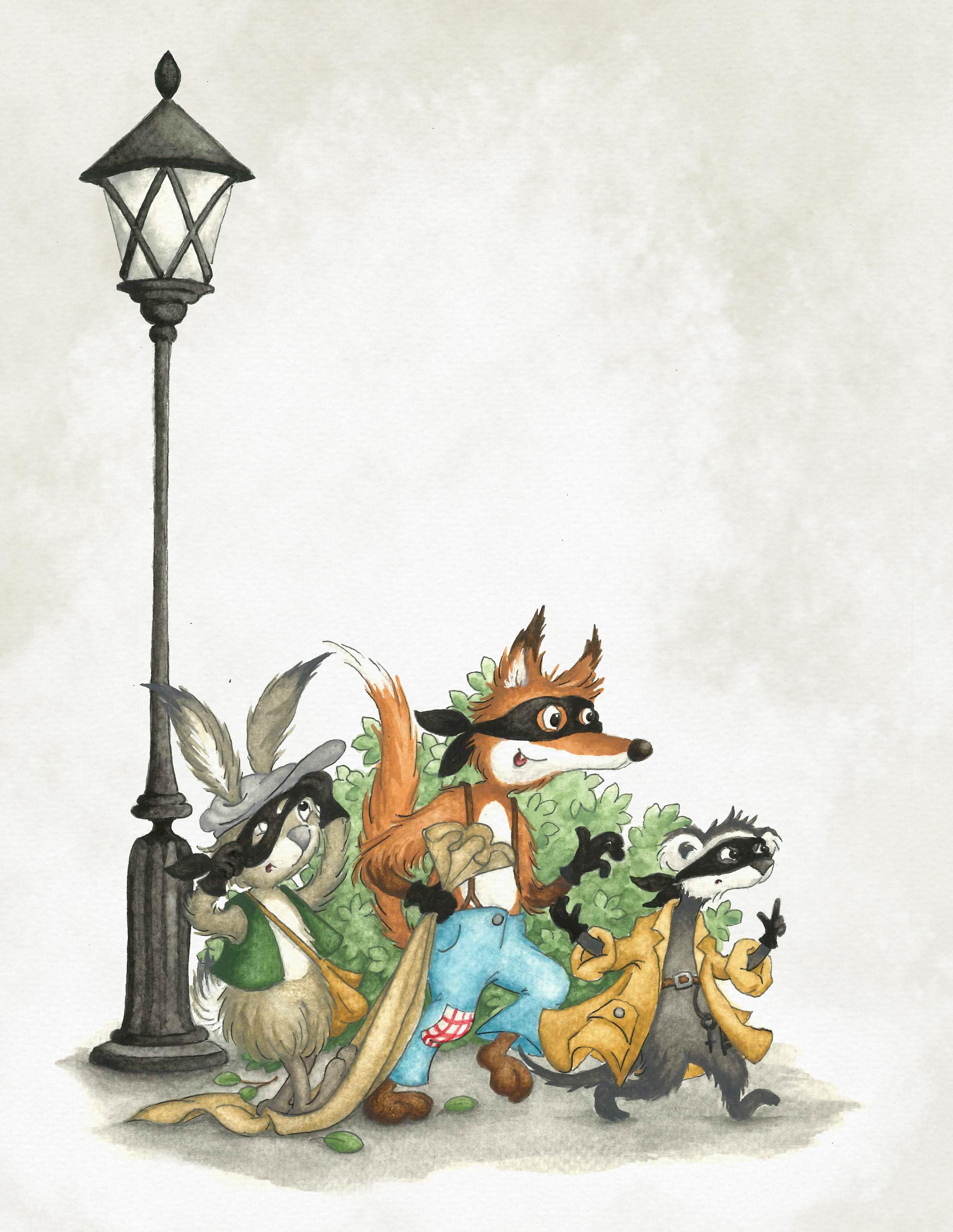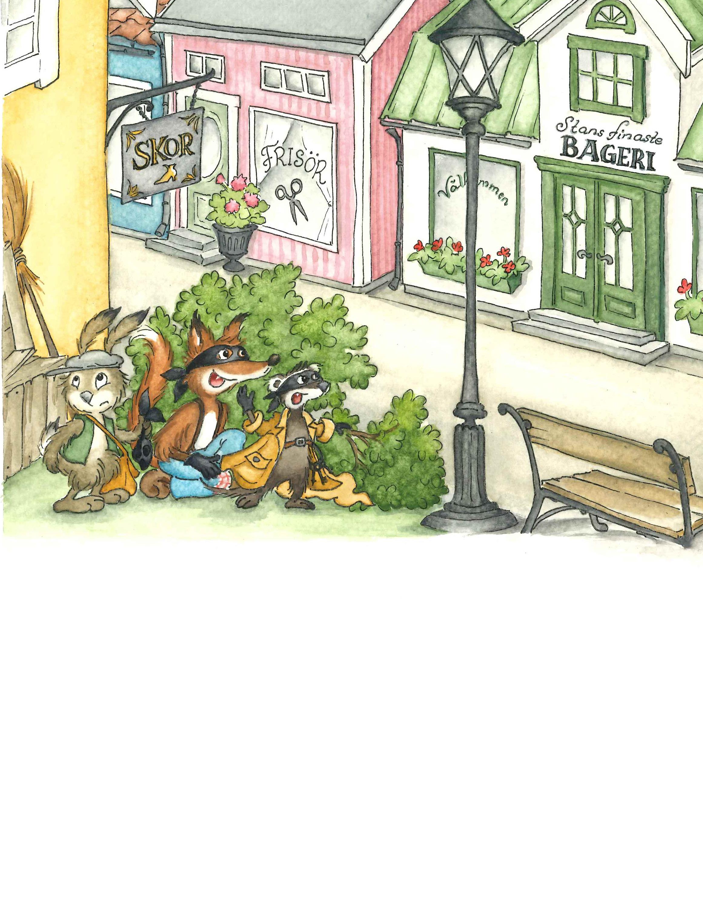 – Har du skaffat en större rånarsäck? sa Illern till Räven och såg lite barsk ut. Vid förra rånet fick vi bara plats med tio muffins i den lilla säcken du hade tagit med. Vi fick inte med oss en enda av de smarriga chokladmuffinsarna som låg på disken.