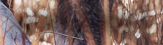 Fight drar i kopplet och viftar på svansen när han får syn på Ebba. Hon står framför foderspridaren med en hink i händerna. Manne vet att Ebba brukar jaga med KG eftersom hennes farsa Jonas jobbar hela tiden.