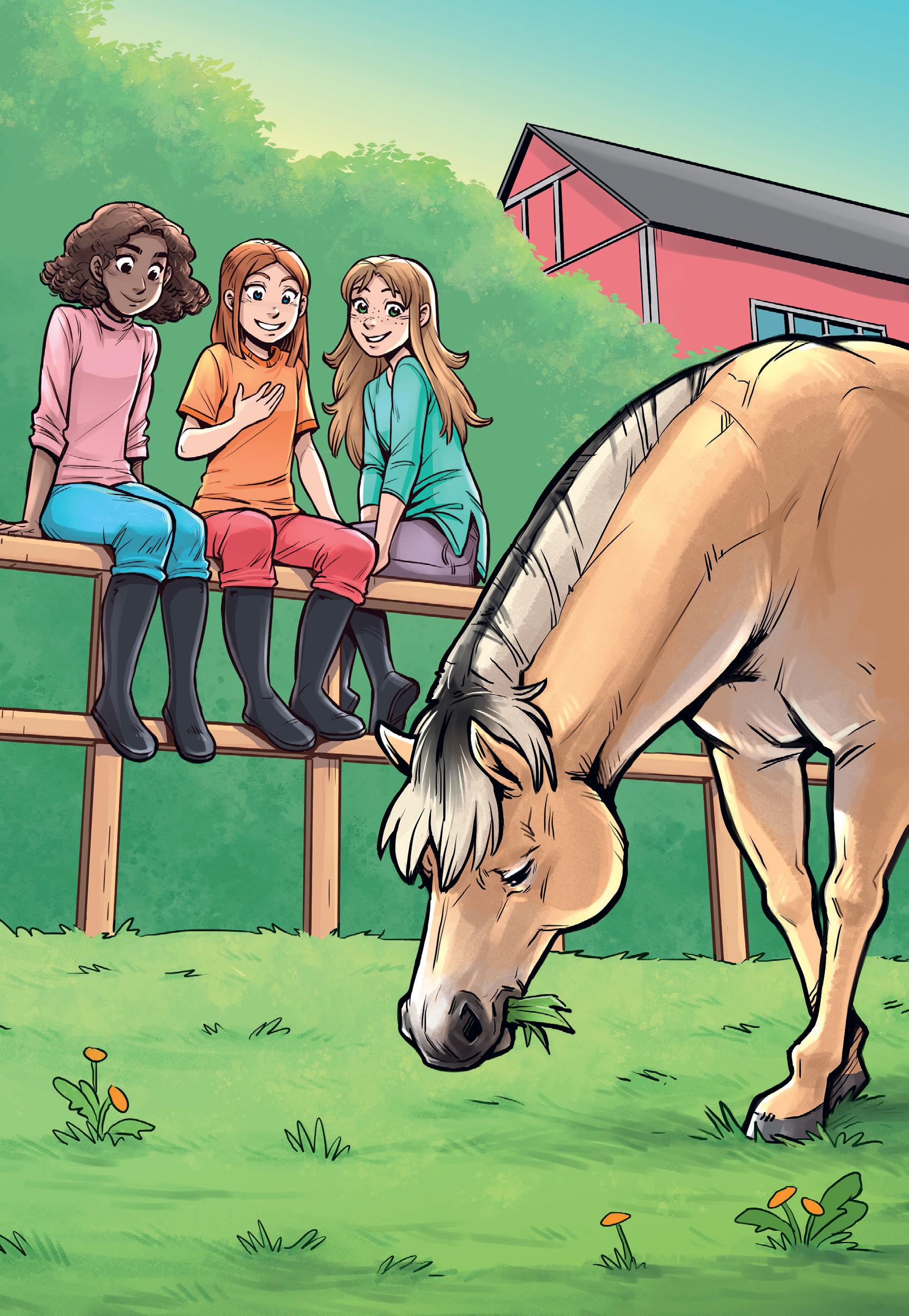 Asta och Mia är Sannas bästa kompisar. De tre tjejerna sätter sig på staketet.